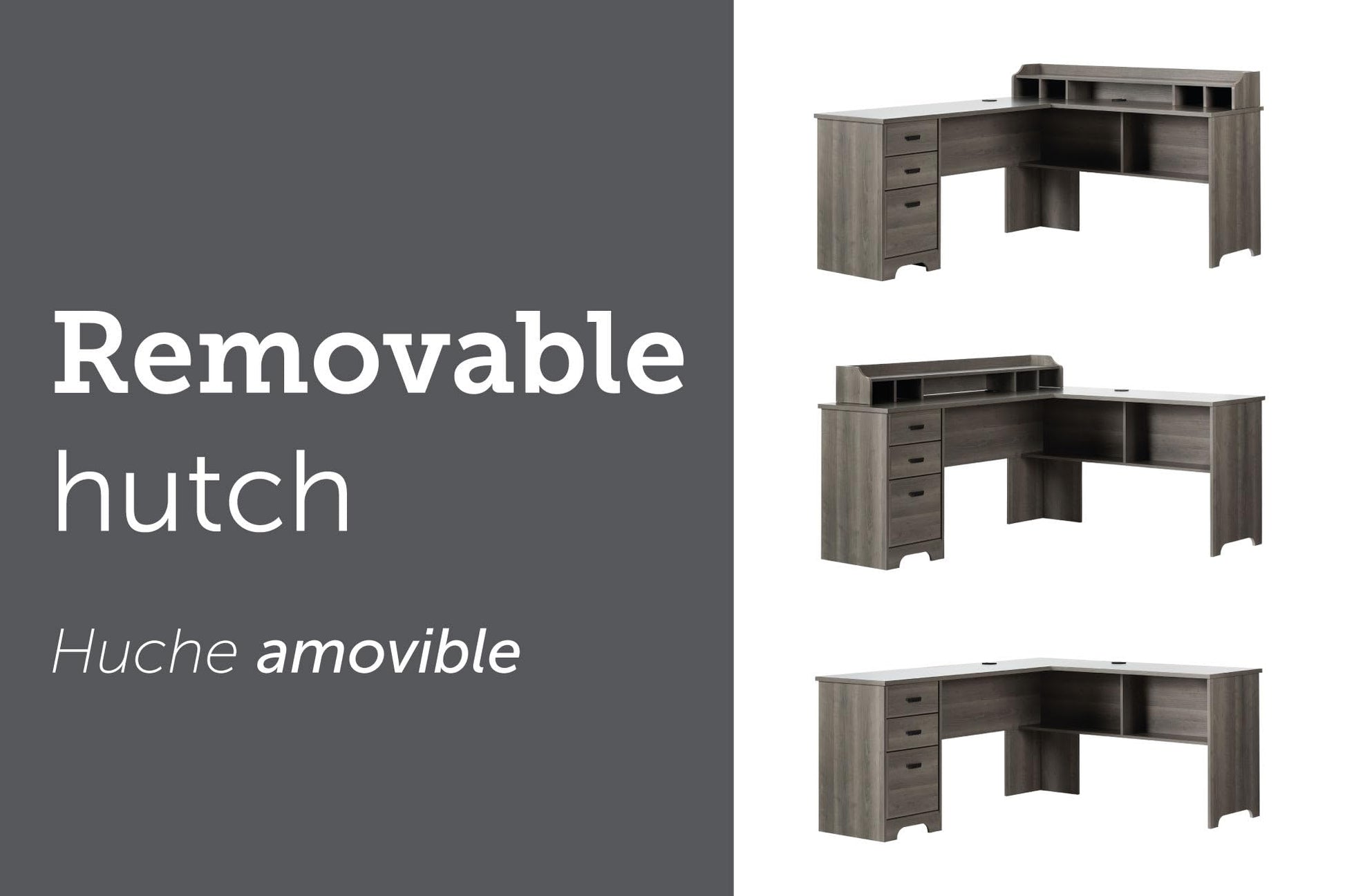 - 5-YEAR LIMITED WARRANTY: South Shore is proud to stand behind this l-shaped desk with removable hutch with an exclusive 5-year limited warranty. Shop with confidence knowing your purchase is always covered.
