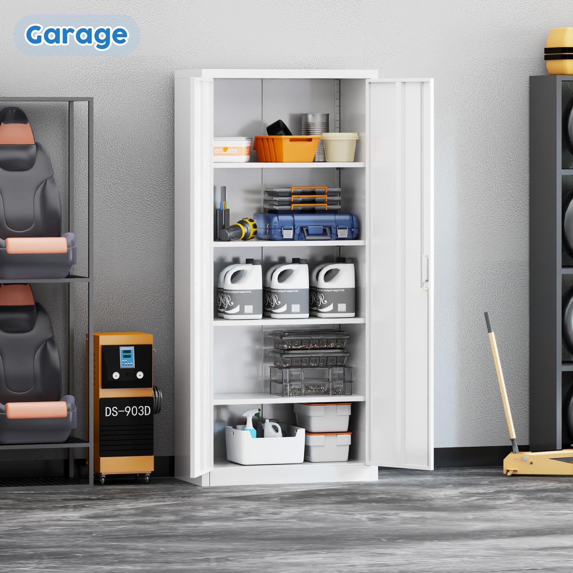 - 【High-capacity】71-inch metal file cabinet with 4 Adjustable shelves is suitable for storing office documents and supplies, garage tools or other large and heavy household items. Perfect for home, office, garages, schools, shops, warehouses or other commercial spaces. 4 adjustable shelves allows you to arrange them according to your own organizing needs and requirement.