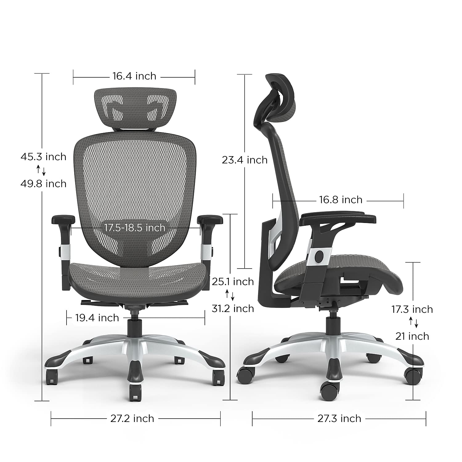 - DIMENSIONS: This mesh task chair measures 45.3" - 49.8" H x 27.2" W x 27.3" D. Designed with sturdy carpet casters, this executive office chair can support up to 250 pounds over a full workday and easily roll across your office floor.