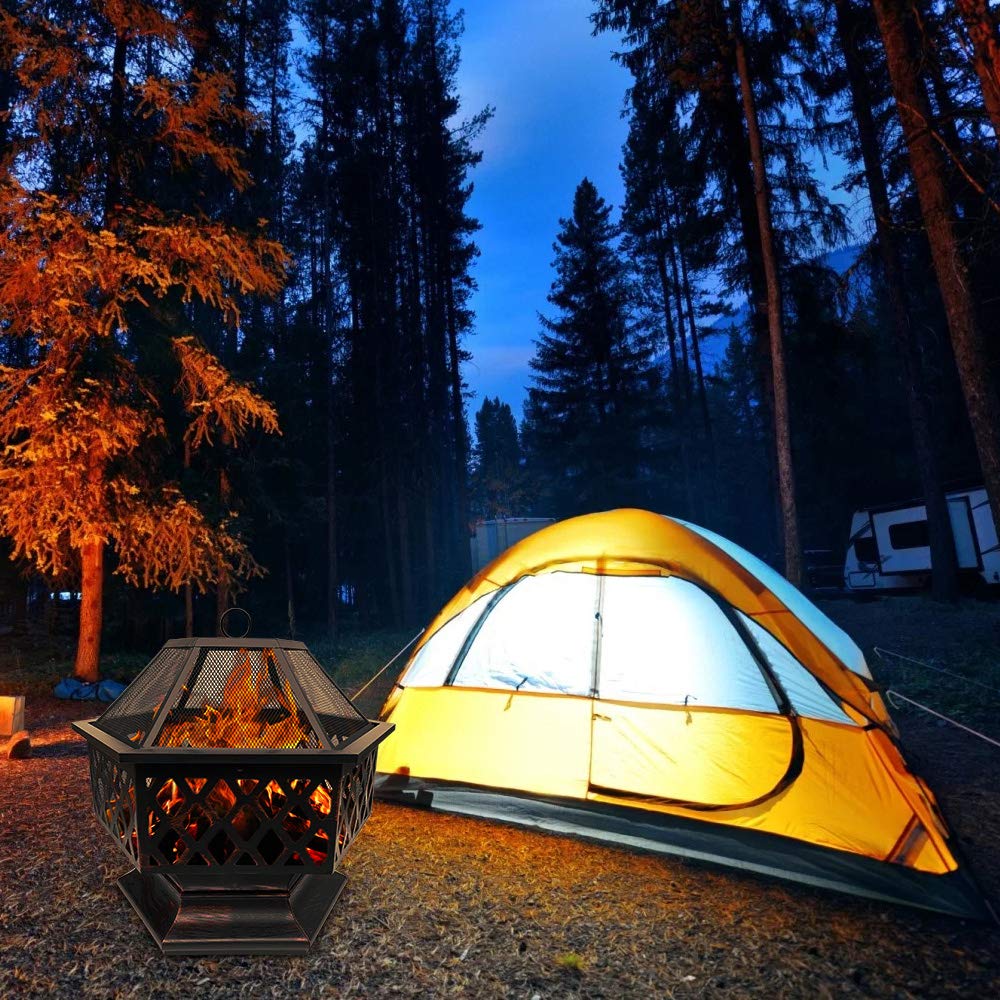 Steel Hexagonal Fire Pit Fire Bowl for Garden and Patio Outdoor Garden Heater Bronze