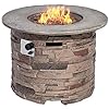 - Unique Craftsmanship & Design - This outdoor propane fire pit is made of concrete with stone look which protect from cracking and makes more vivid and morden. The internal burner is made of stainless steel for a longer working and evenly heated.