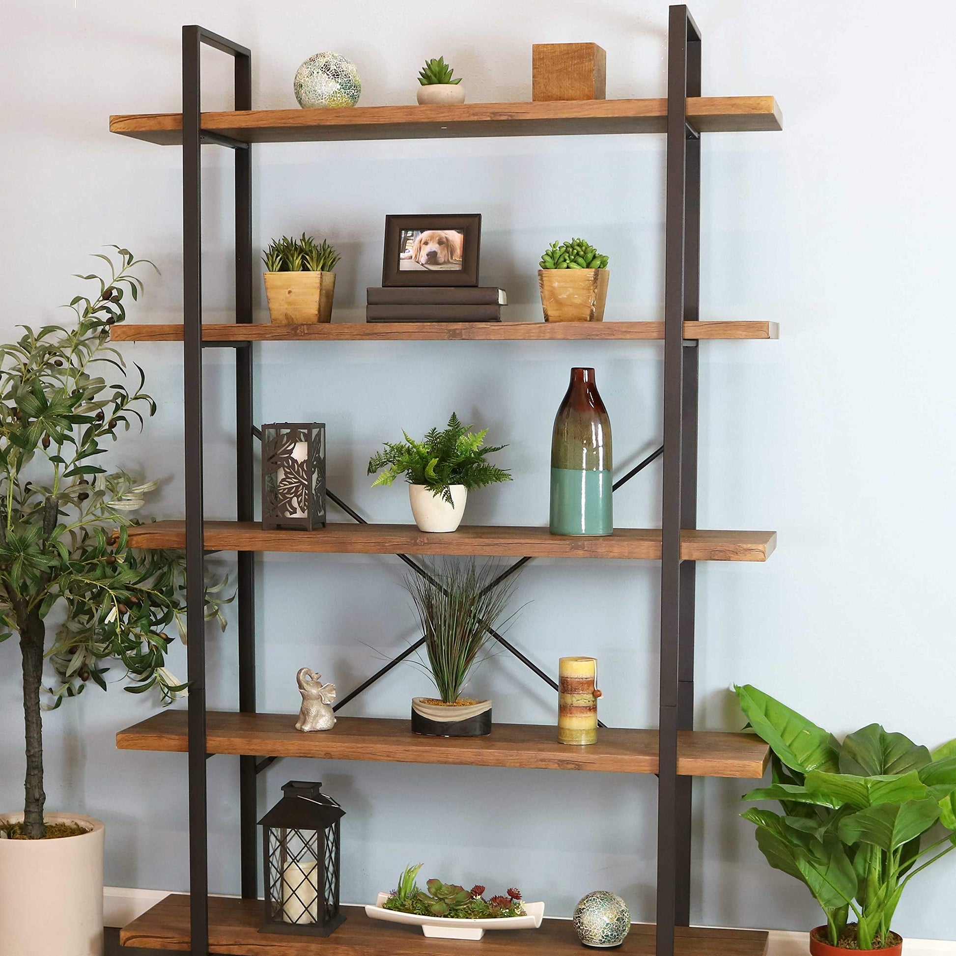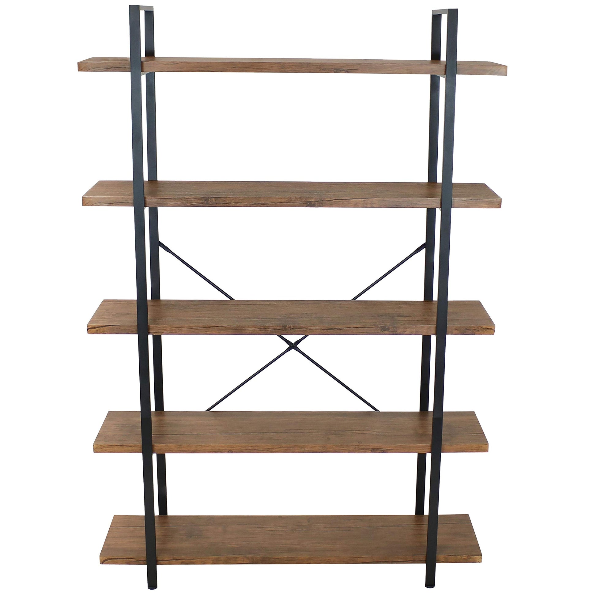 5-Tier Industrial Style Bookshelf with Open Shelves and Veneer Finish - North American
