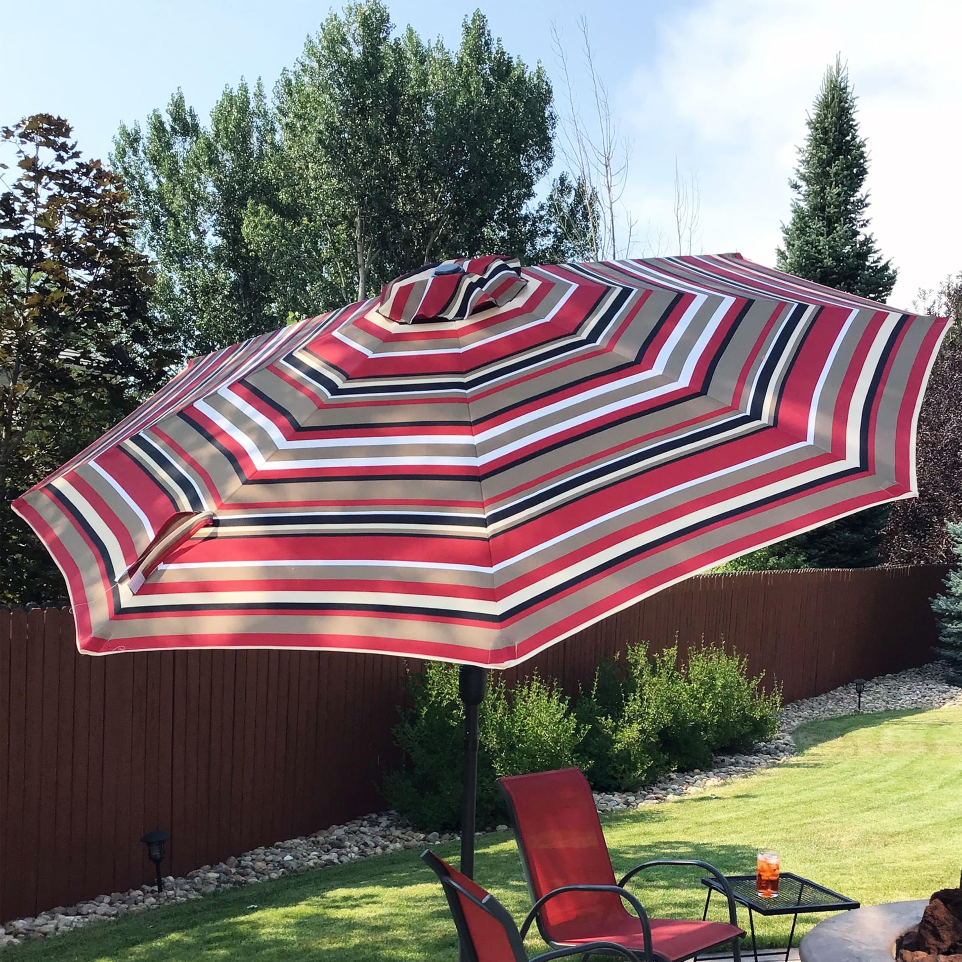 9 ft Striped Patio Umbrella - Polyester Table Market Umbrella with Push-Button Tilt and Crank