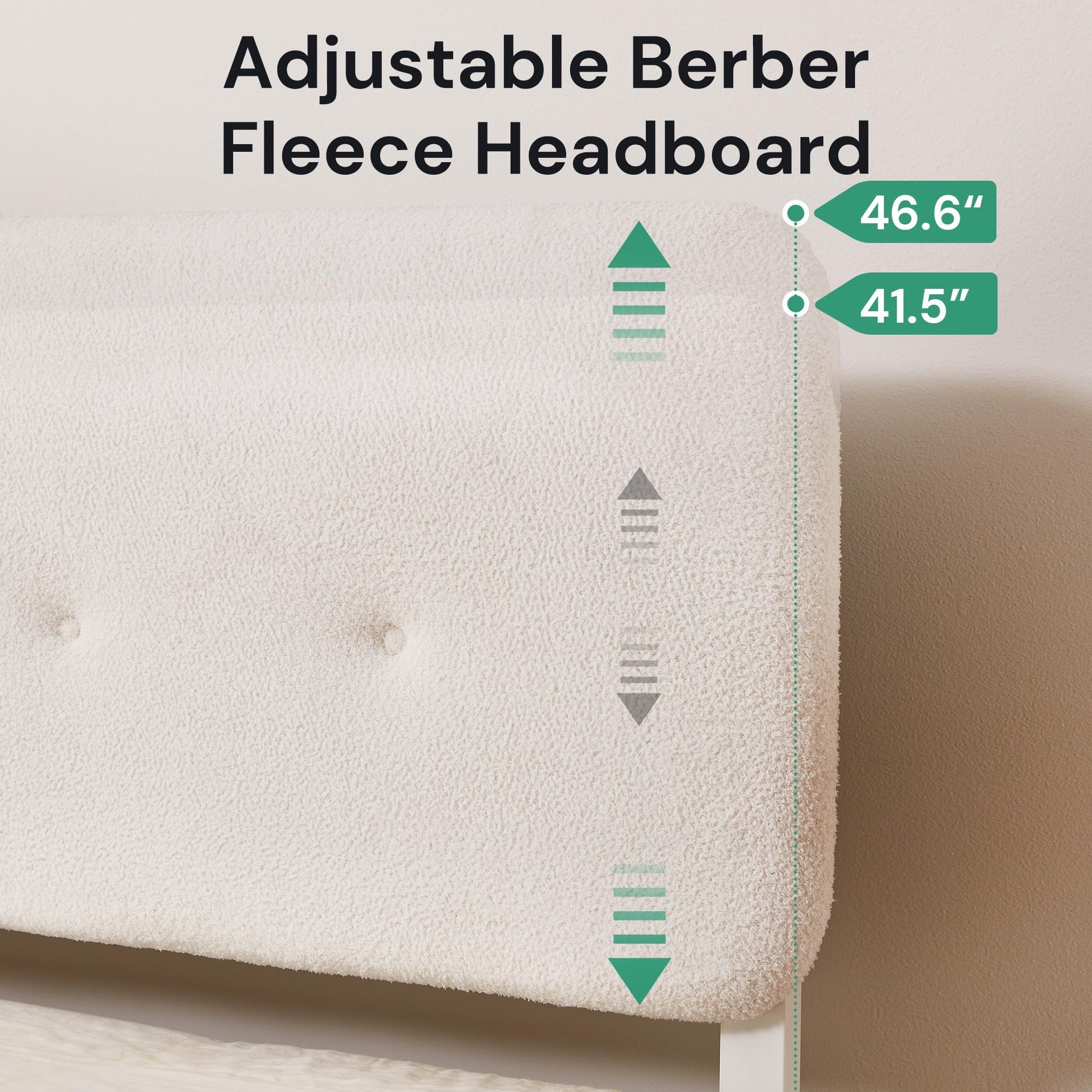 SunsGrove Boucle Bed Frame with Headboard, Queen Upholstered Platform Bed Frame, Adjustable Boucle Fabric Headboard and Durable Wooden Slats, No Box Spring Needed, Easy Assembly, White