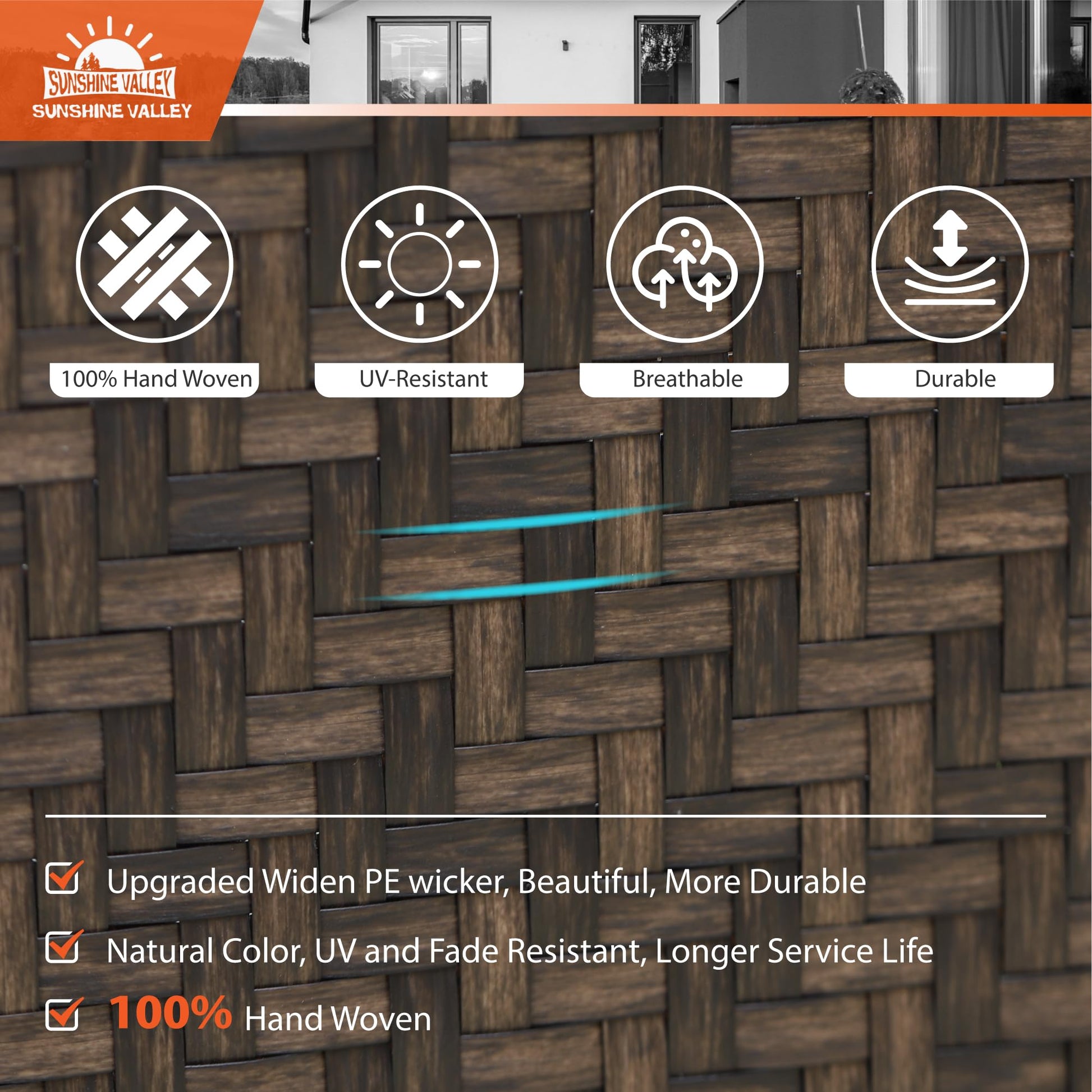 - This outdoor dining table and chair set is made by skilled craftsmen and uses brown weather-resistant widened PE wicker. The wicker has high density, UV-resistant, anti-aging, and fade-resistant, and has a longer service life.