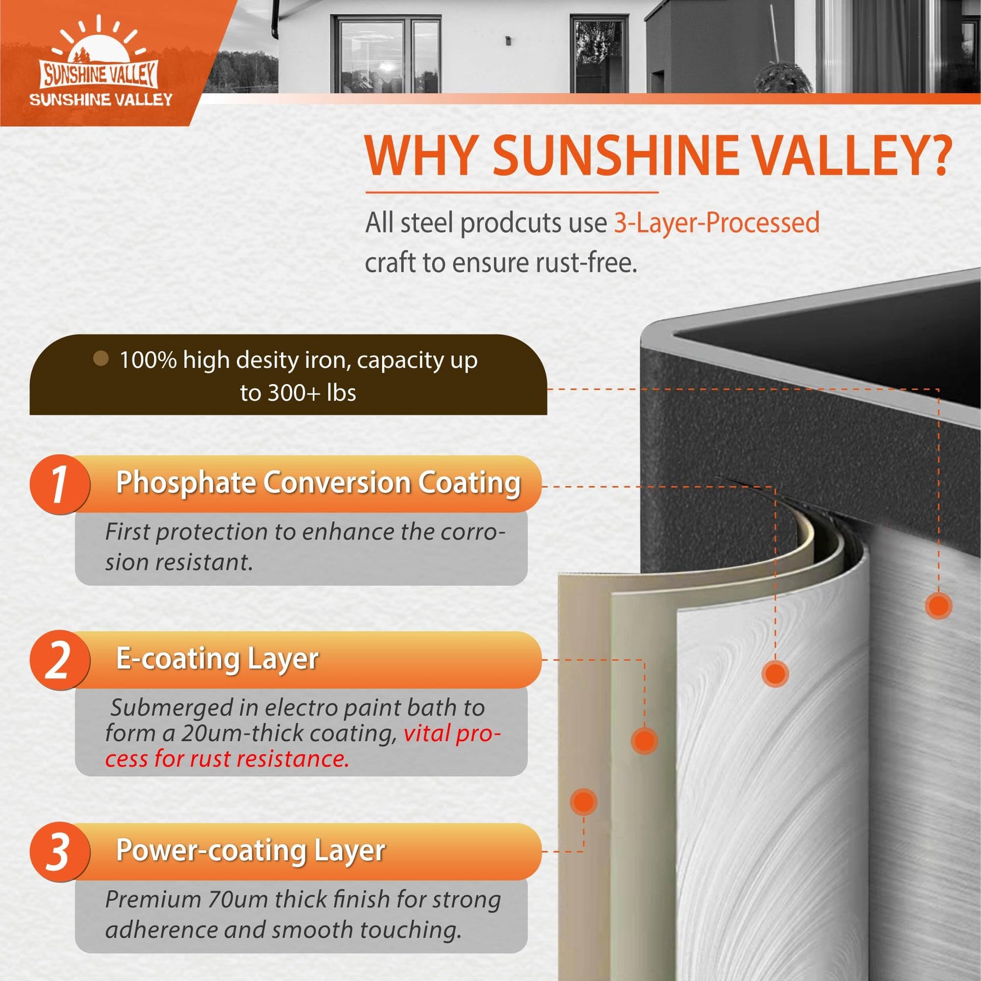 - This outdoor dining set is made of high-performance E-COATING and POWDER-COATING dual rust prevention techniques that are All weather resistant, anti-rust, and easy to clean, with no special care. That patio dining set has a heavy-duty wrought iron metal frame, The patio dining chairs could support up to 350 lbs weight, and the patio dining table supports 165 lbs. It's Perfect for outdoor use.
