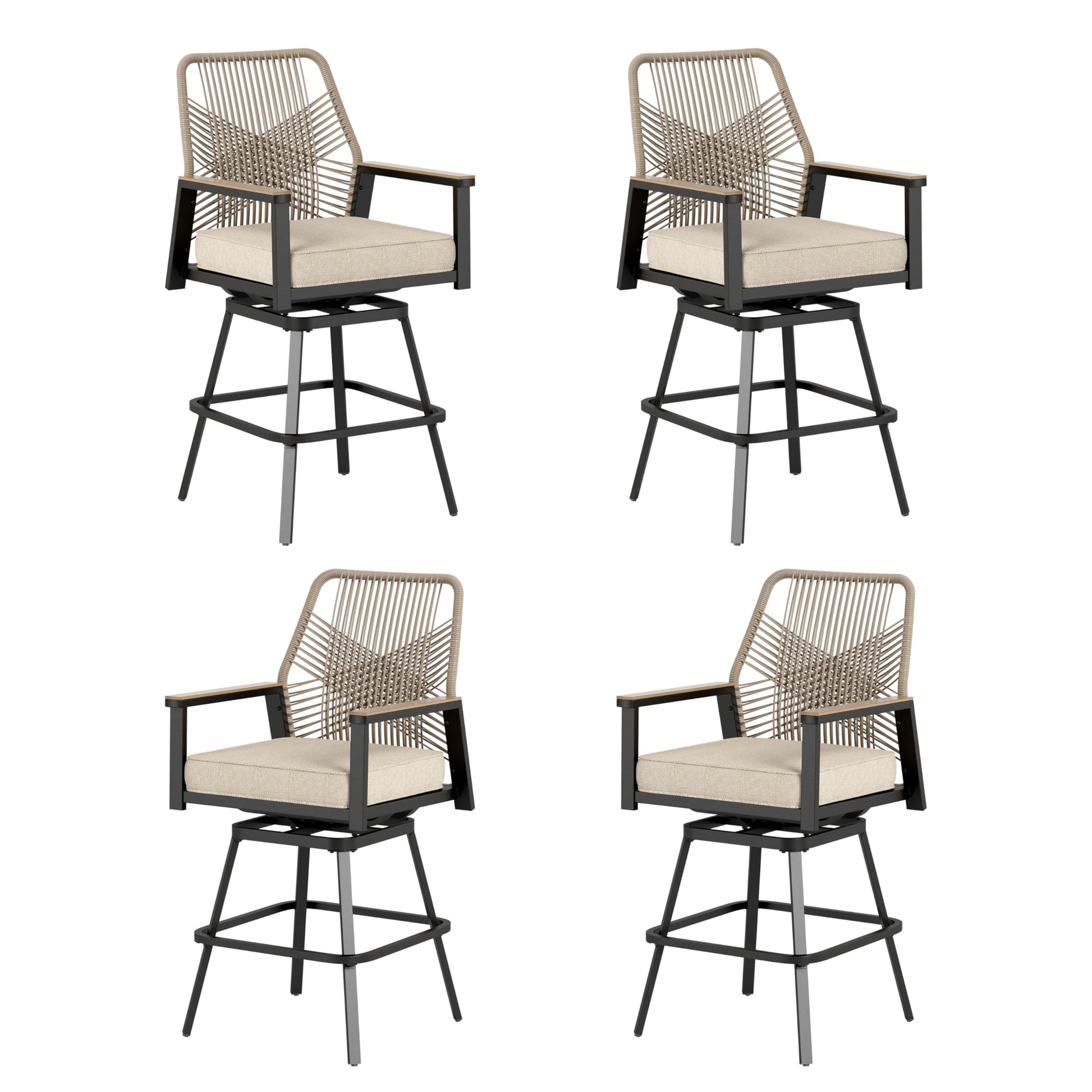 Outdoor Swivel Bar Stools Set of 4, Rattan High Top Patio Chairs