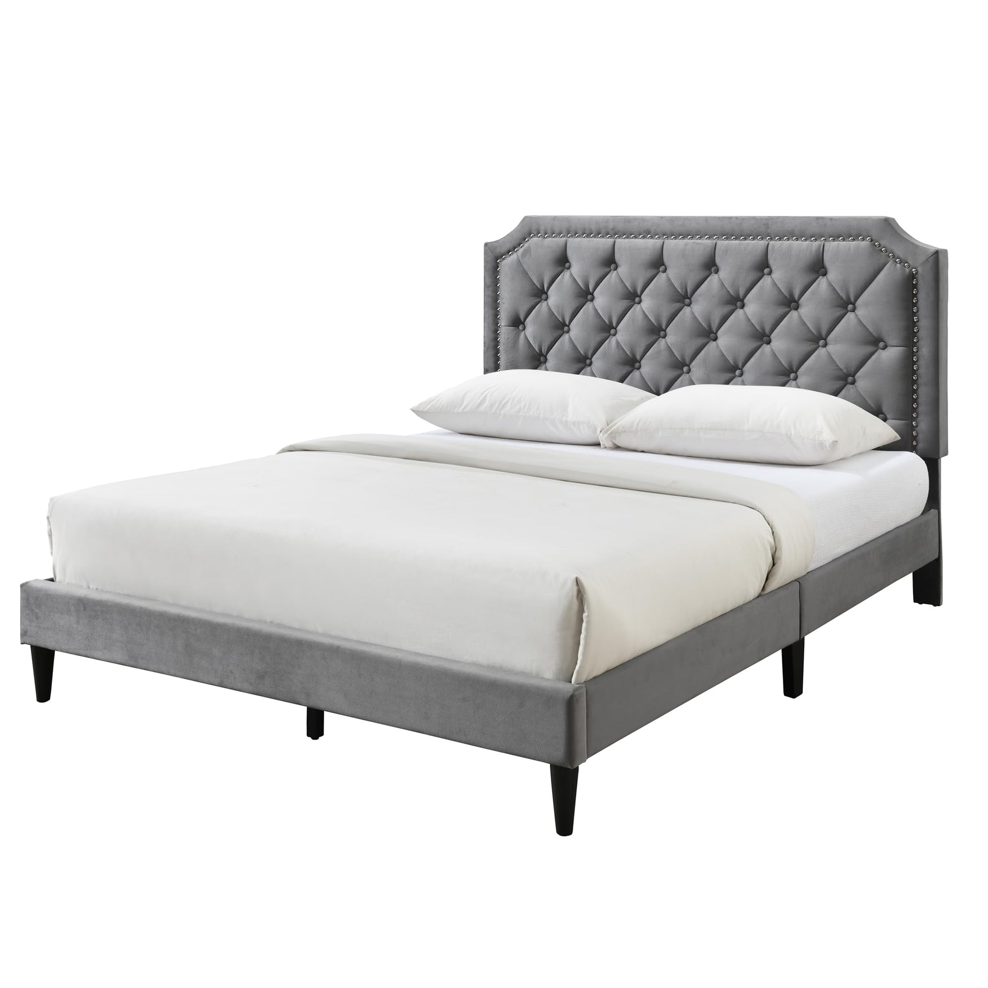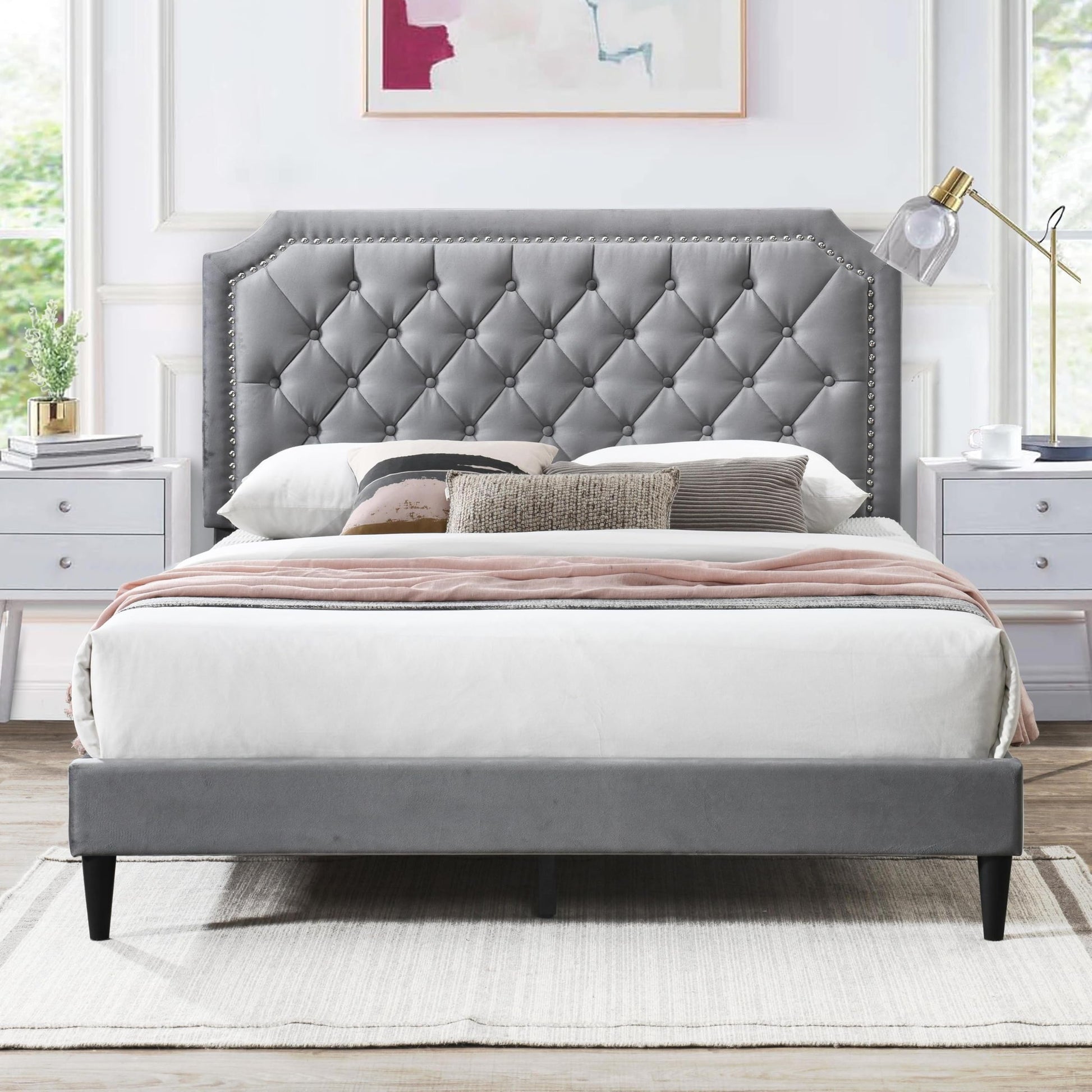 Queen Size Bed Frame, Velvet Upholstered Platform Bed, Modern Tufted Buttoned Design