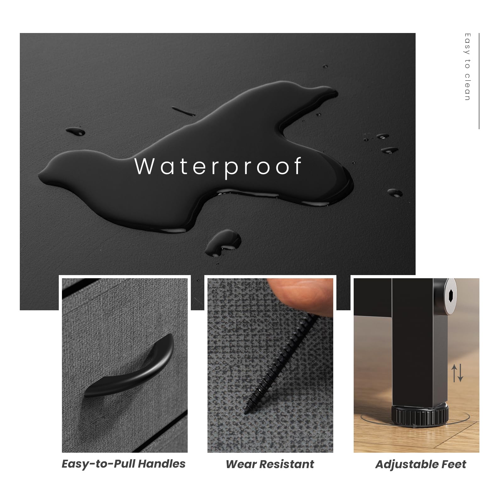 - This fabric dresser combines water-resistant MDF board with a durable steel frame, make it sturdy under load 66 lb. Anti-tipping accessories are also equipped to prevent accidents.
