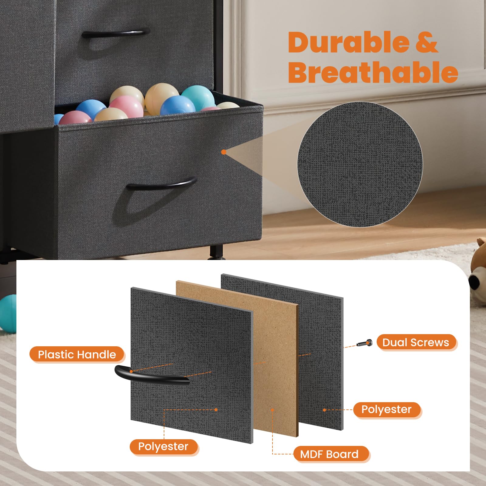 - This tall dresser is made of cationic materials, all other sides and gaps are made of high-quality breathable and non-woven synthetic fiber, harmless and wear-resistant, suitable for kids, teens and adults. Easy-pull drawers for smooth sliding and closing. For easy cleaning, just wipe with damp cloth and get it air-dried.