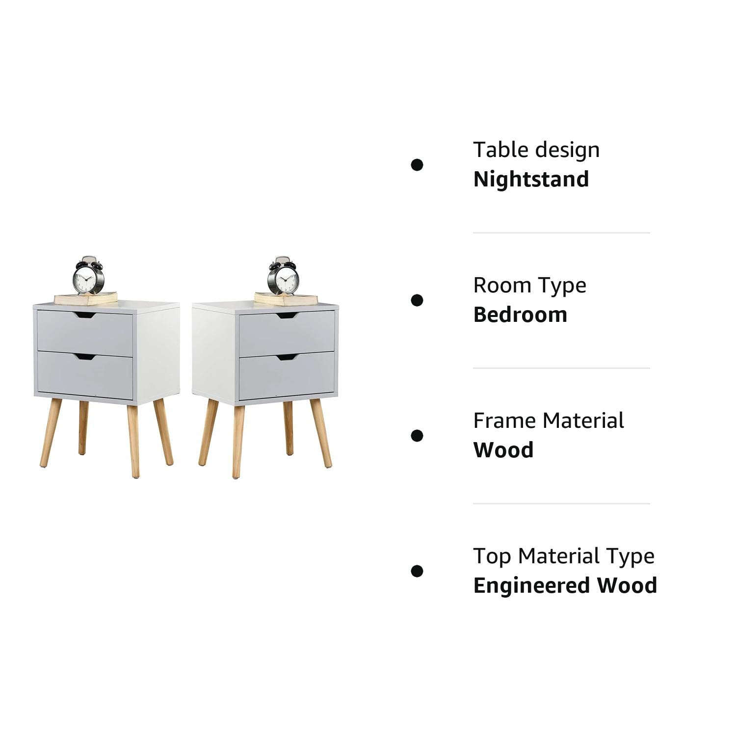 - SMART STORAGE:This modern two-drawer nightstand provides a storage solution for remotes,your favorite books, keepsakes, glasses, medicines and other necessaries at hand. The tabletop is perfect for displaying a lamp, clock, potted plant or photo frame to offer warmth and personalized decoration.