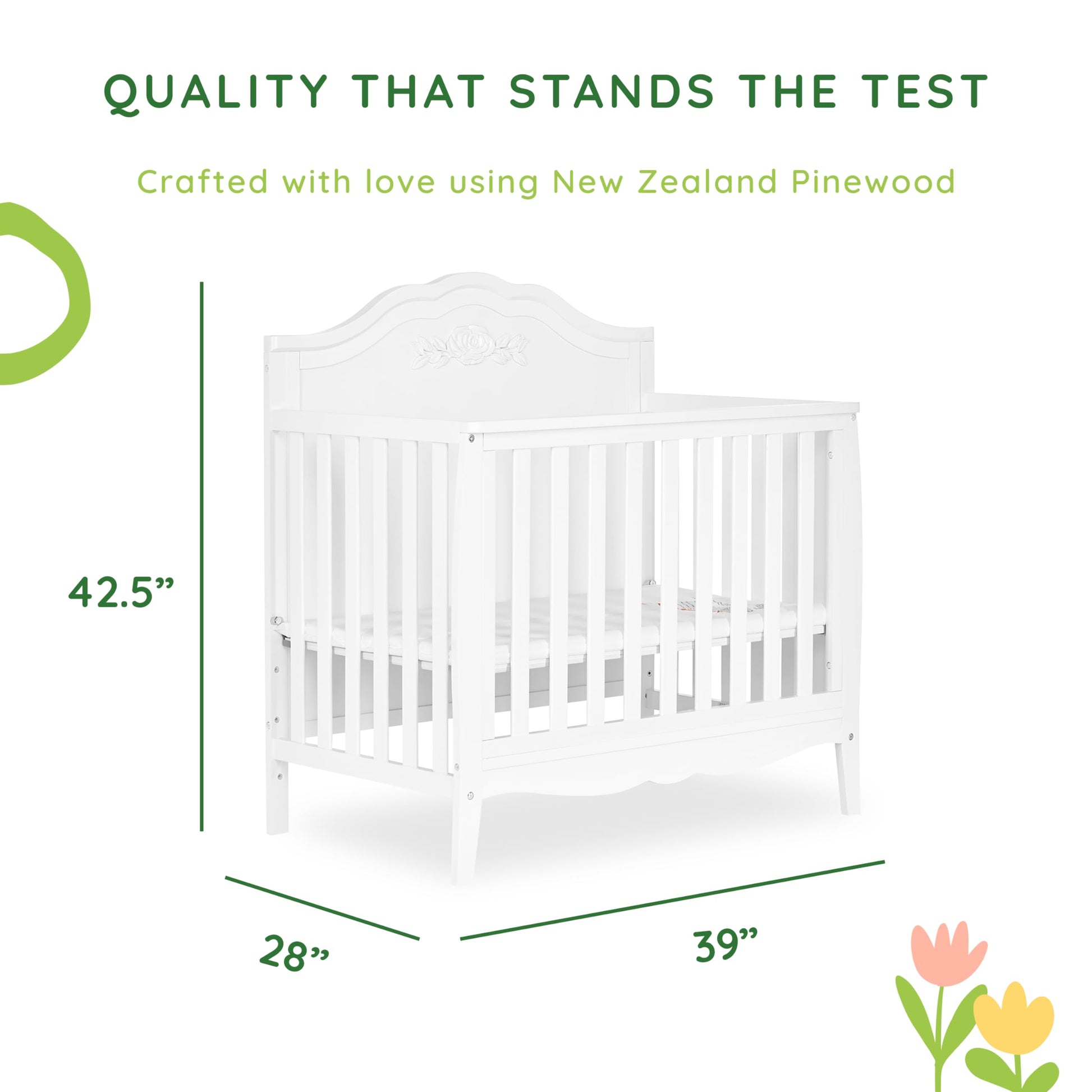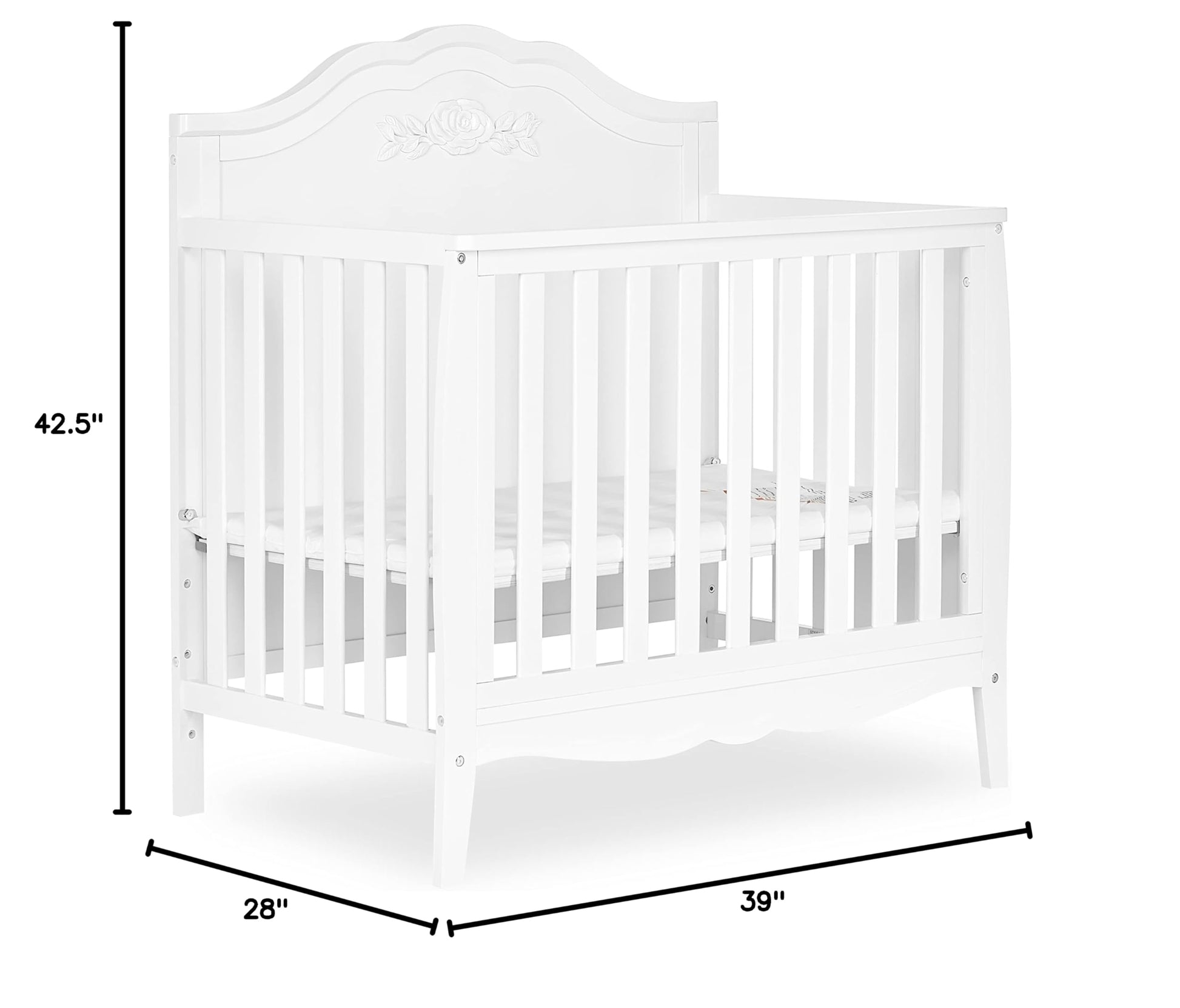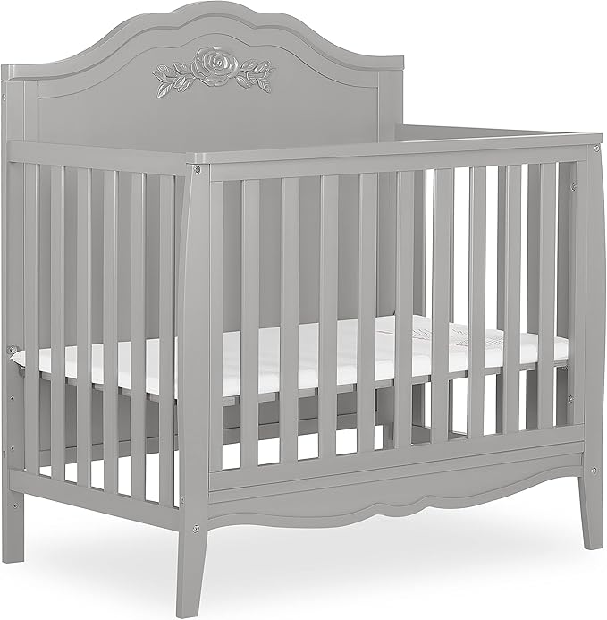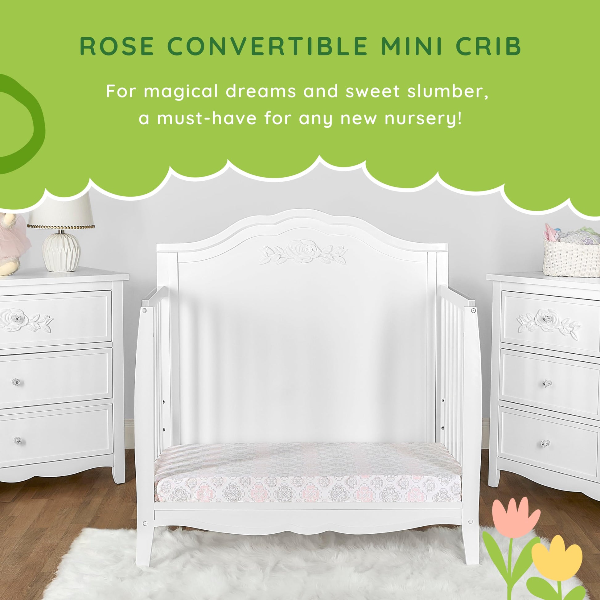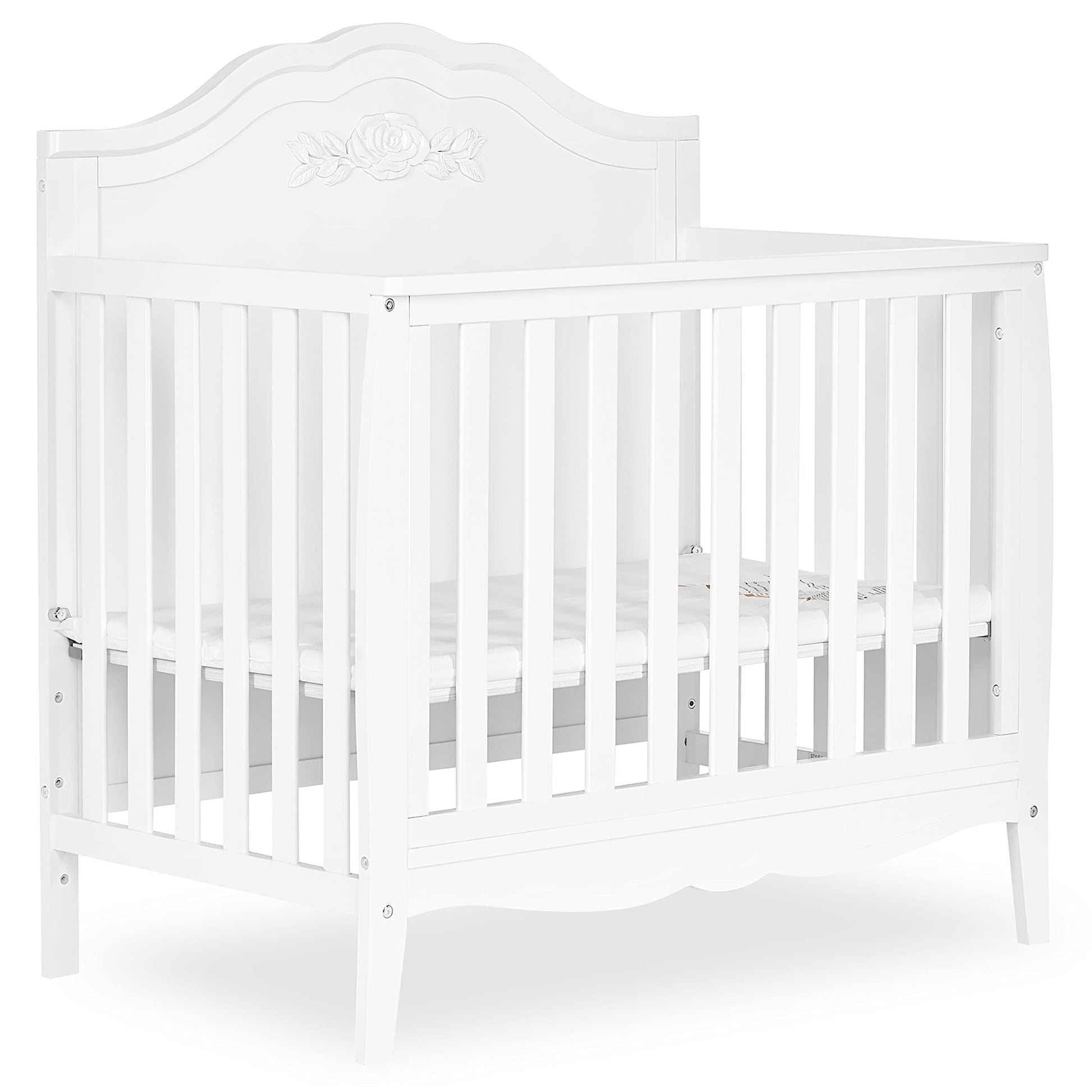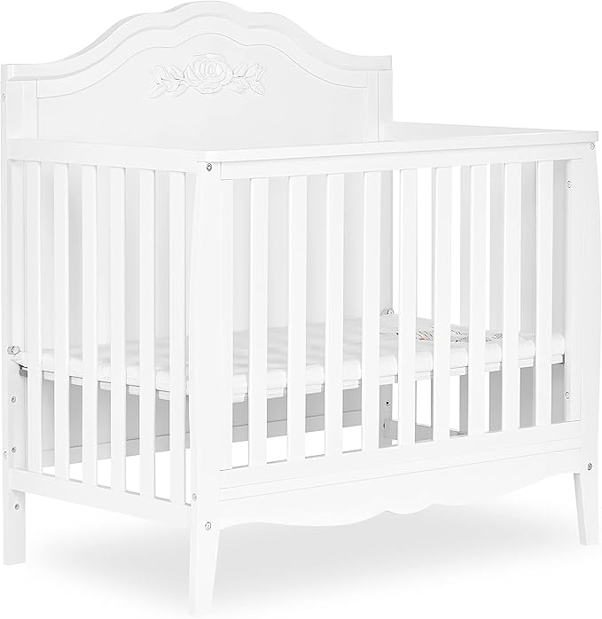 Rose 4-in-1 Convertible Mini Crib in White, JPMA Certified Baby Crib, Non-Toxic Finish,