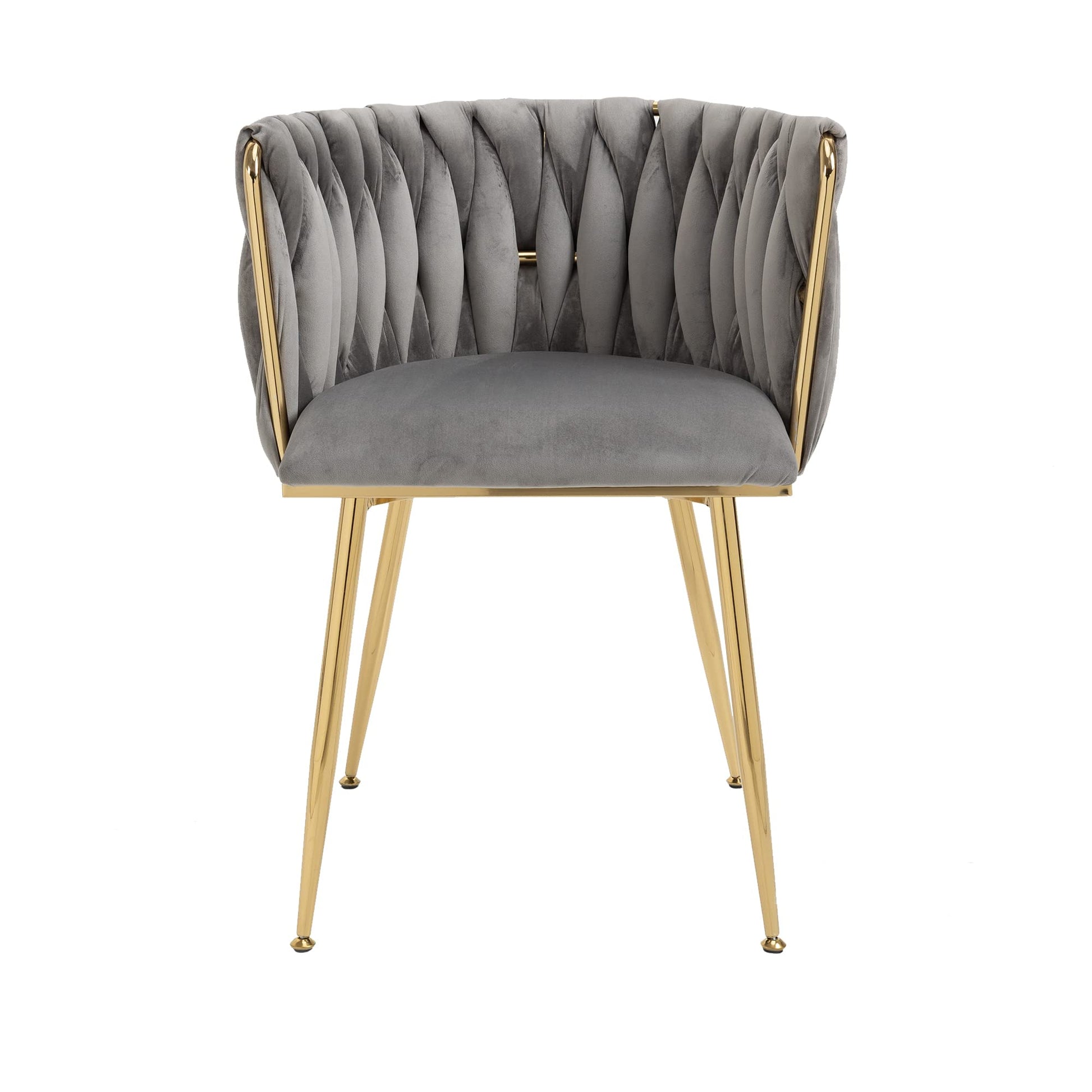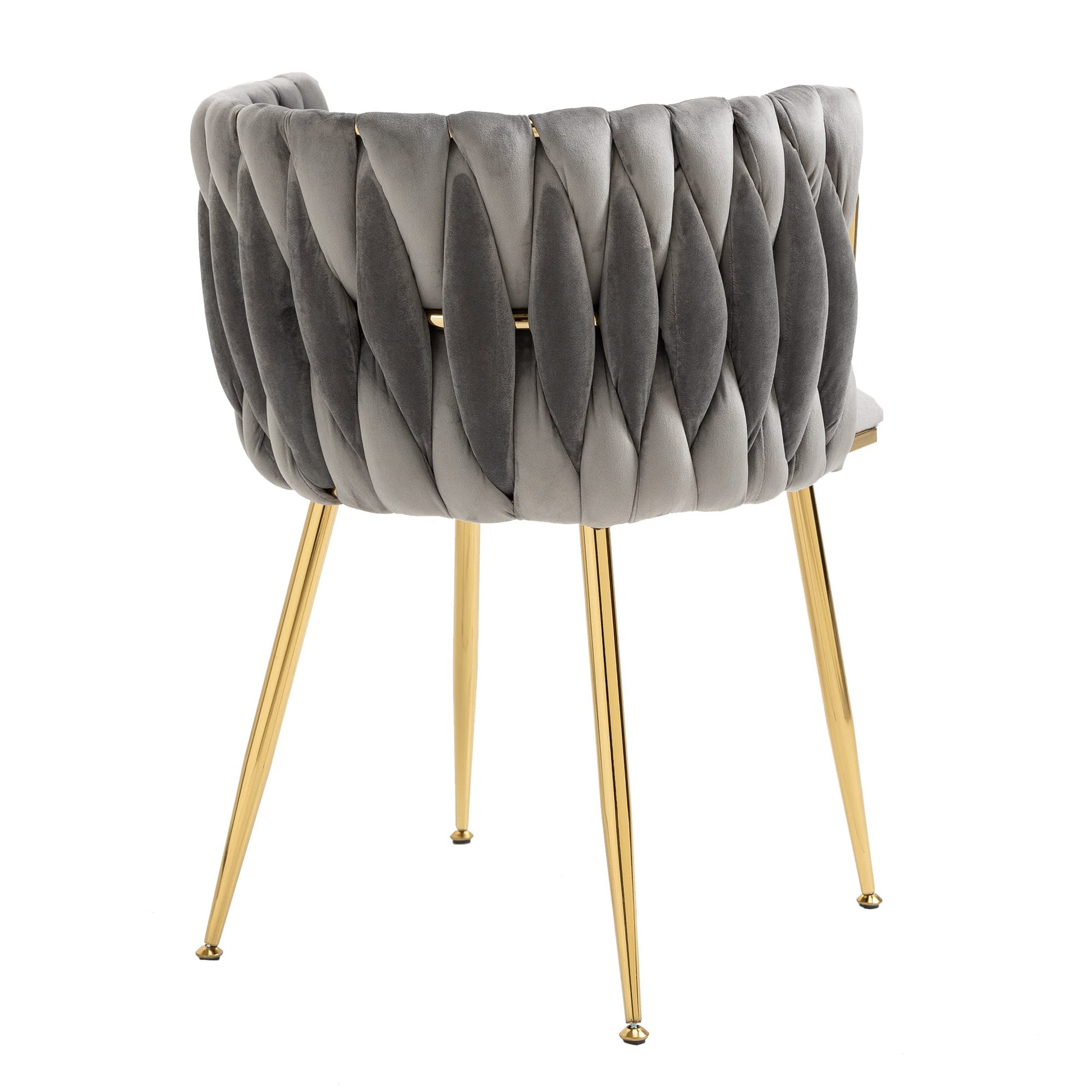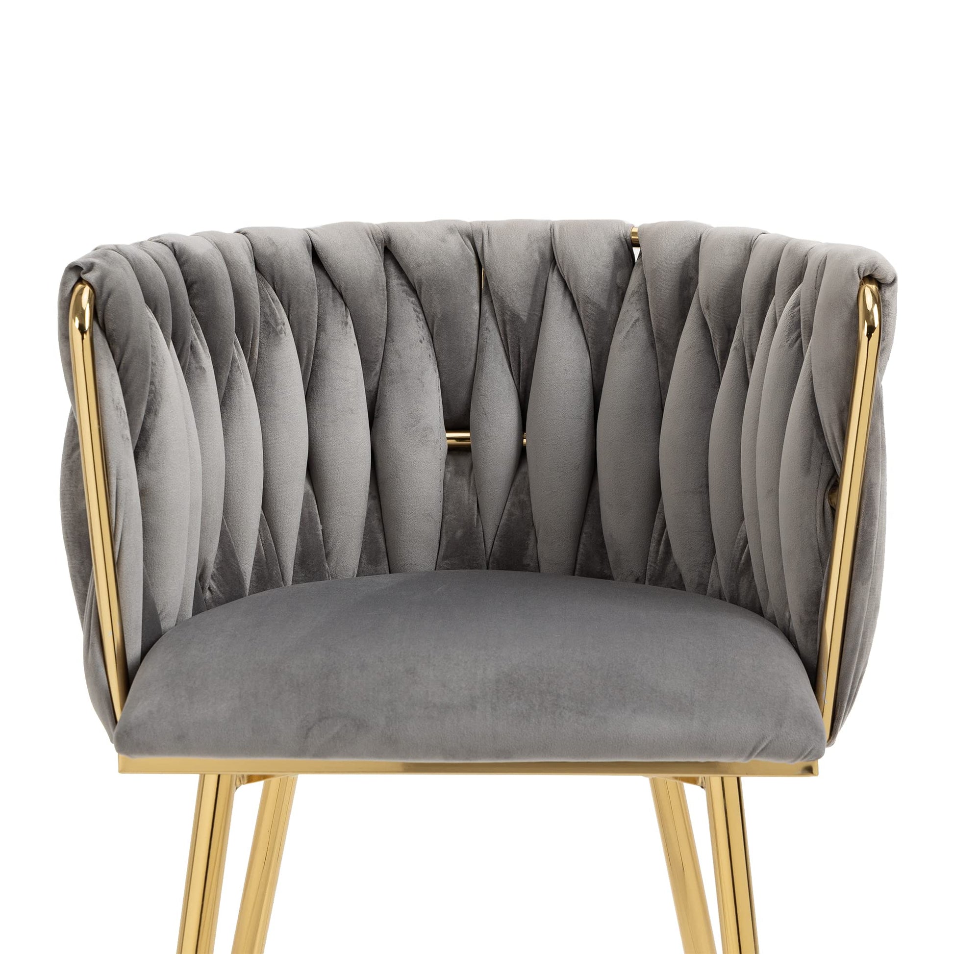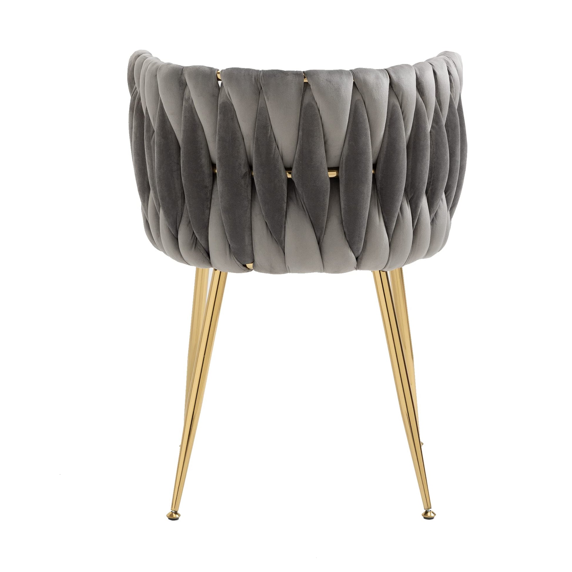 - The curved mid-back is woven with velvet, and the high-quality velvet shuttles on the golden metal frame. Provide you with an elegant and chic seat