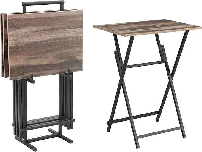 TableTide 4-Piece Folding Snack & TV Tray Set with Stand