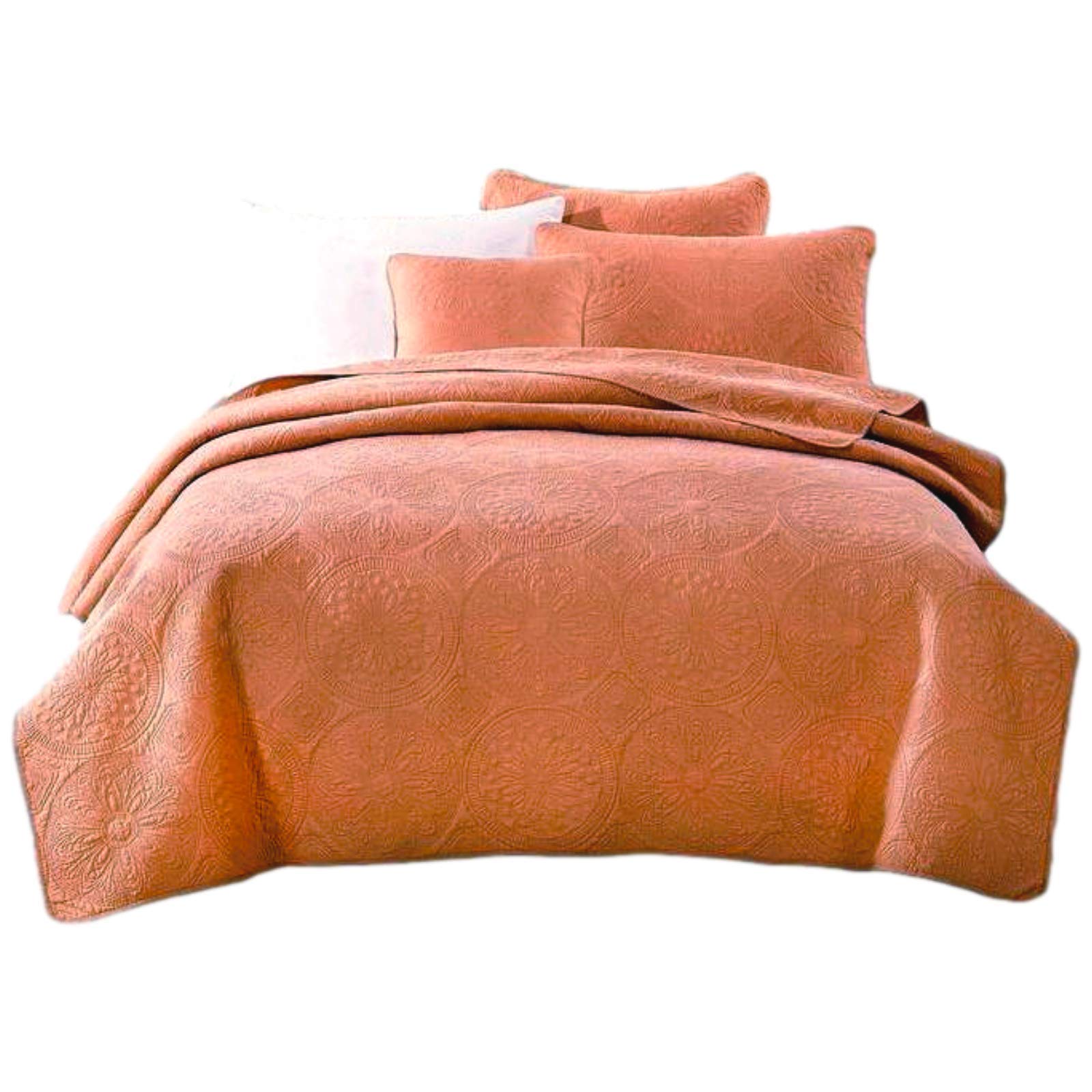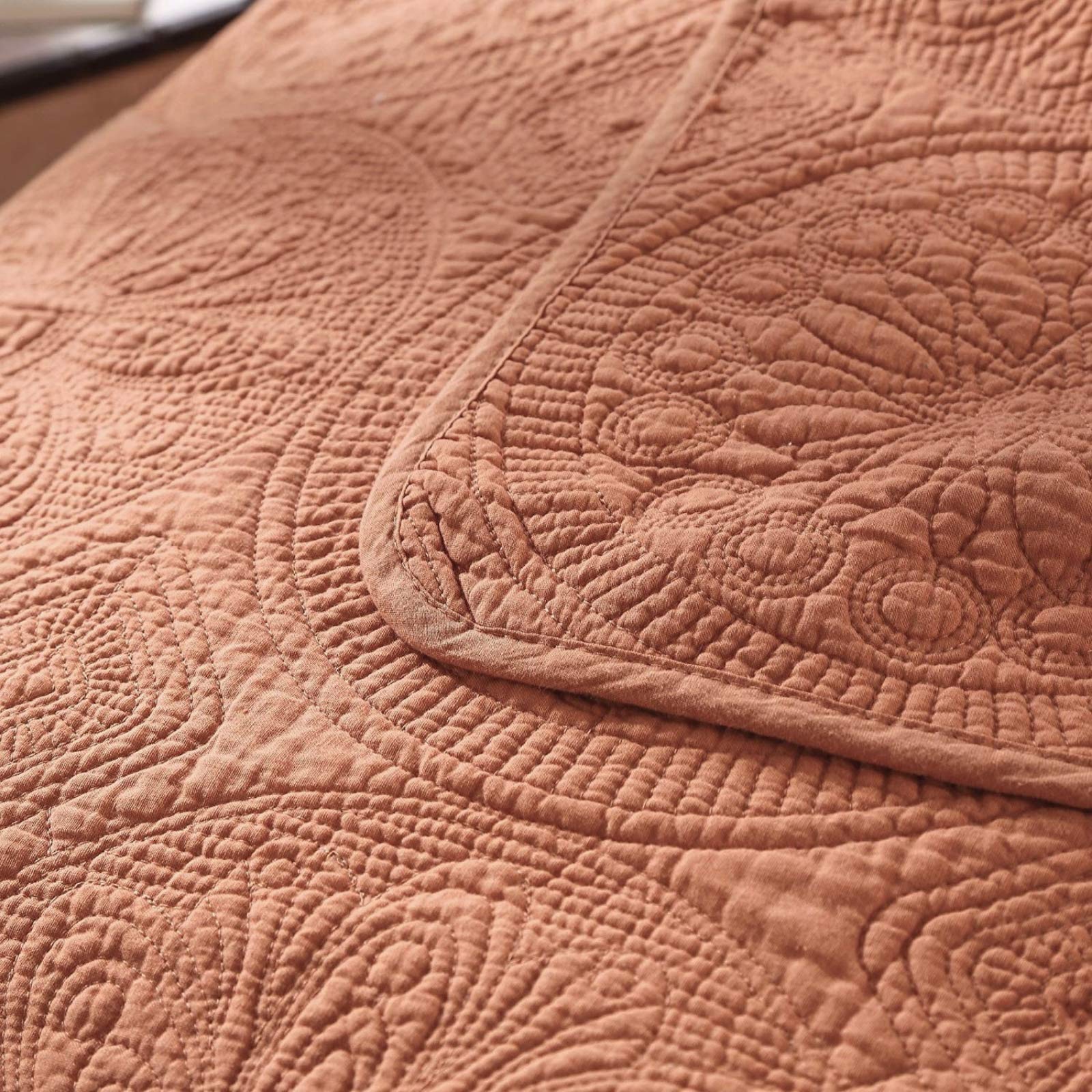 - Floral Matelassé Designs: Features a stone washed raised textured reversible floral mandala pattern over the bedspread