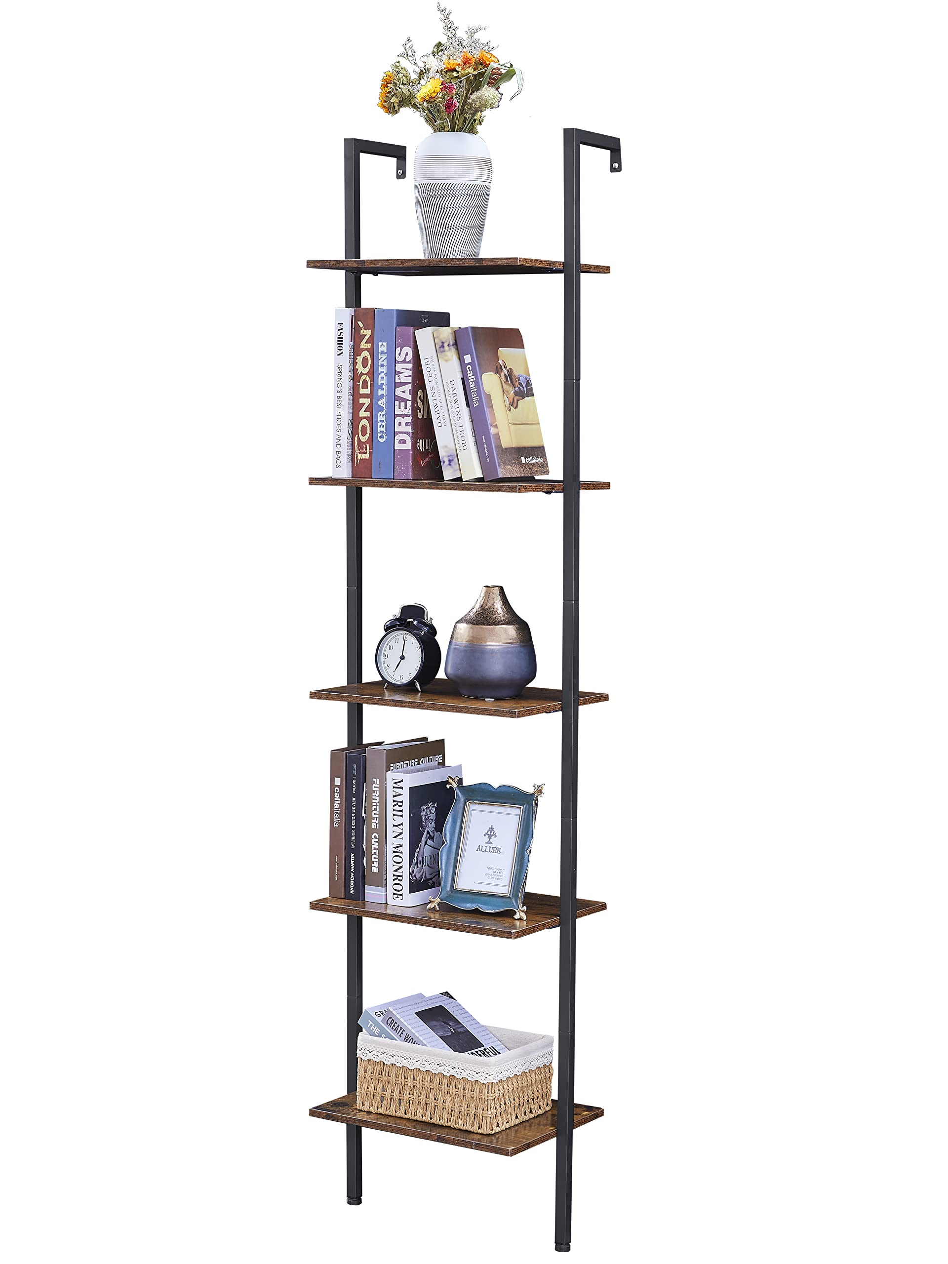 - SPACE-SAVING This 5-tier ladder shelf uses a wall-mounted design. The open layout makes the compact shelf ideal for storage in tight space. It can be placed in the bedroom, kitchen, living room, office or anywhere