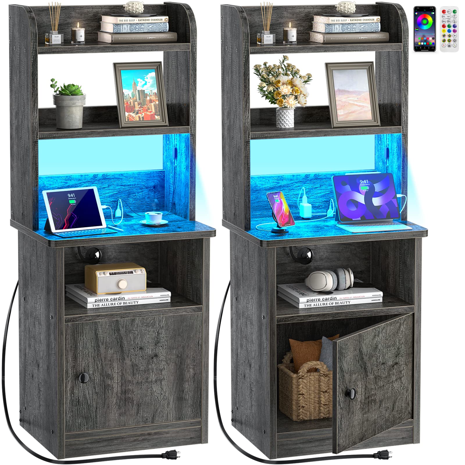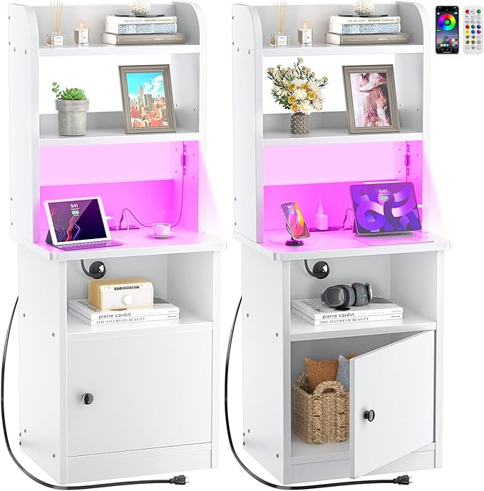 - Our nightstands come complete with smart RGB LED light strip, providing over 60000 colors & 29 flashing modes. It have CCT mode, built-in mic, music sync and timer functions for convenient daily use. You can use a smart APP and remote control to change the color and brightness easily. You can use the included LED lighting of nightstand as an indirect source of light as well.