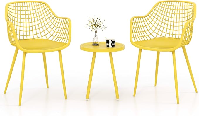 - Premium PP material: Our outdoor bistro set is crafted from high-quality PP material, not only resistant to fading, water, and wear, but also boasting a smooth finish that stays fresh-looking through every season. Enjoy the blend of aesthetic appeal and long-lasting performance with every use.