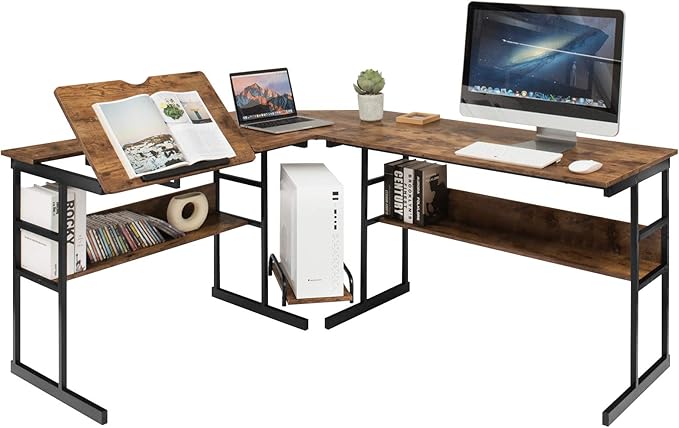 - Open Bookshelves & CPU Stand: Equipped with two open bookshelves, this L-shaped computer desk provides a spacious storage space for your office supplies, while leaving lots of surface space for working area. Besides, it comes with a free host stand to protect the host from scratching the floor.