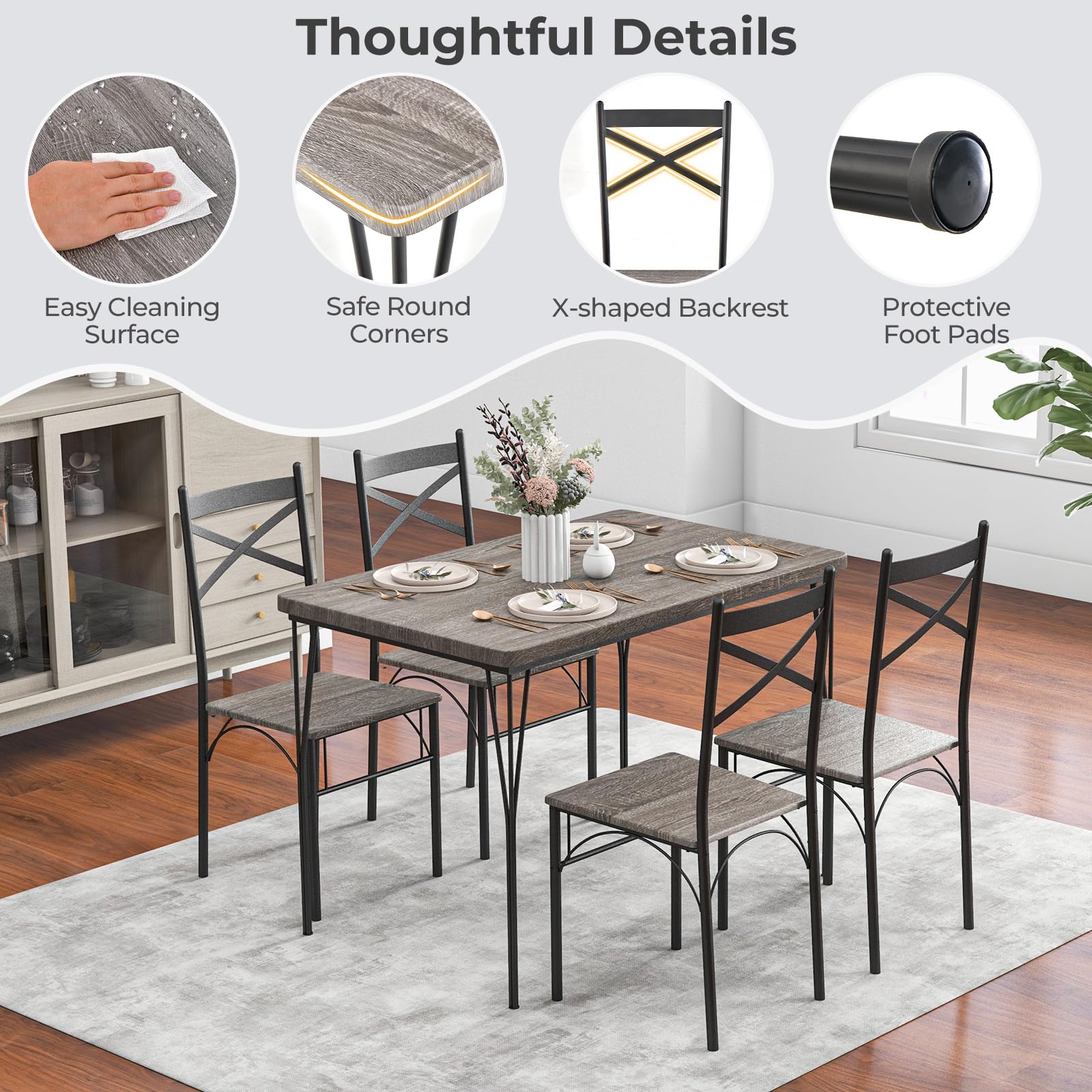 Tangkula Dining Table Set for 4, Modern Rectangular Dining Table & 4 Dining Chairs Set, Space-Saving Kitchen Dining Room Furniture Set, Dinette Set for Home Breakfast Nook