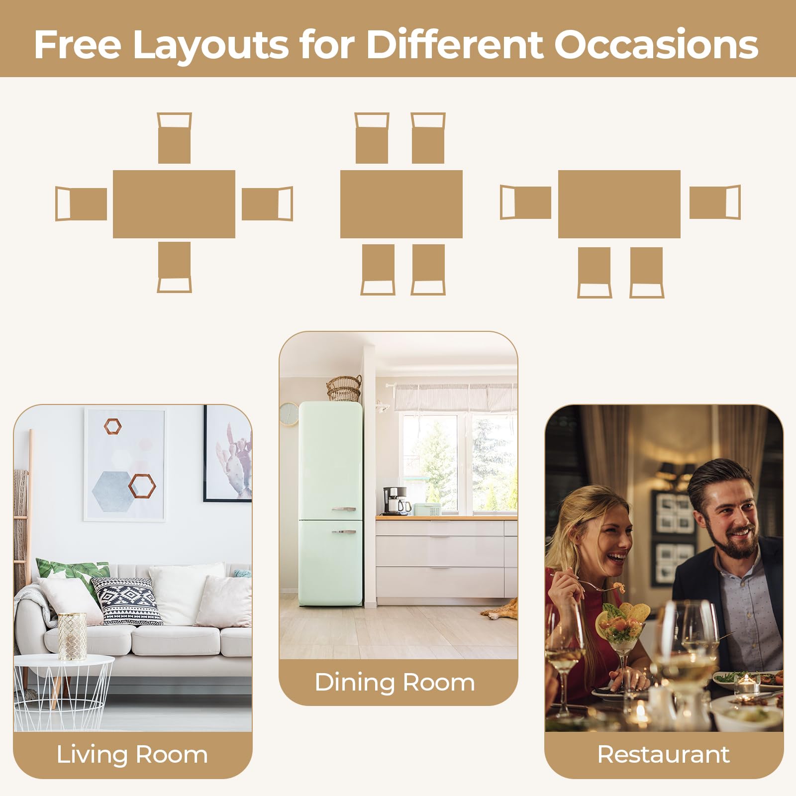 Suitable for various settings, including kitchens, dining rooms and more.