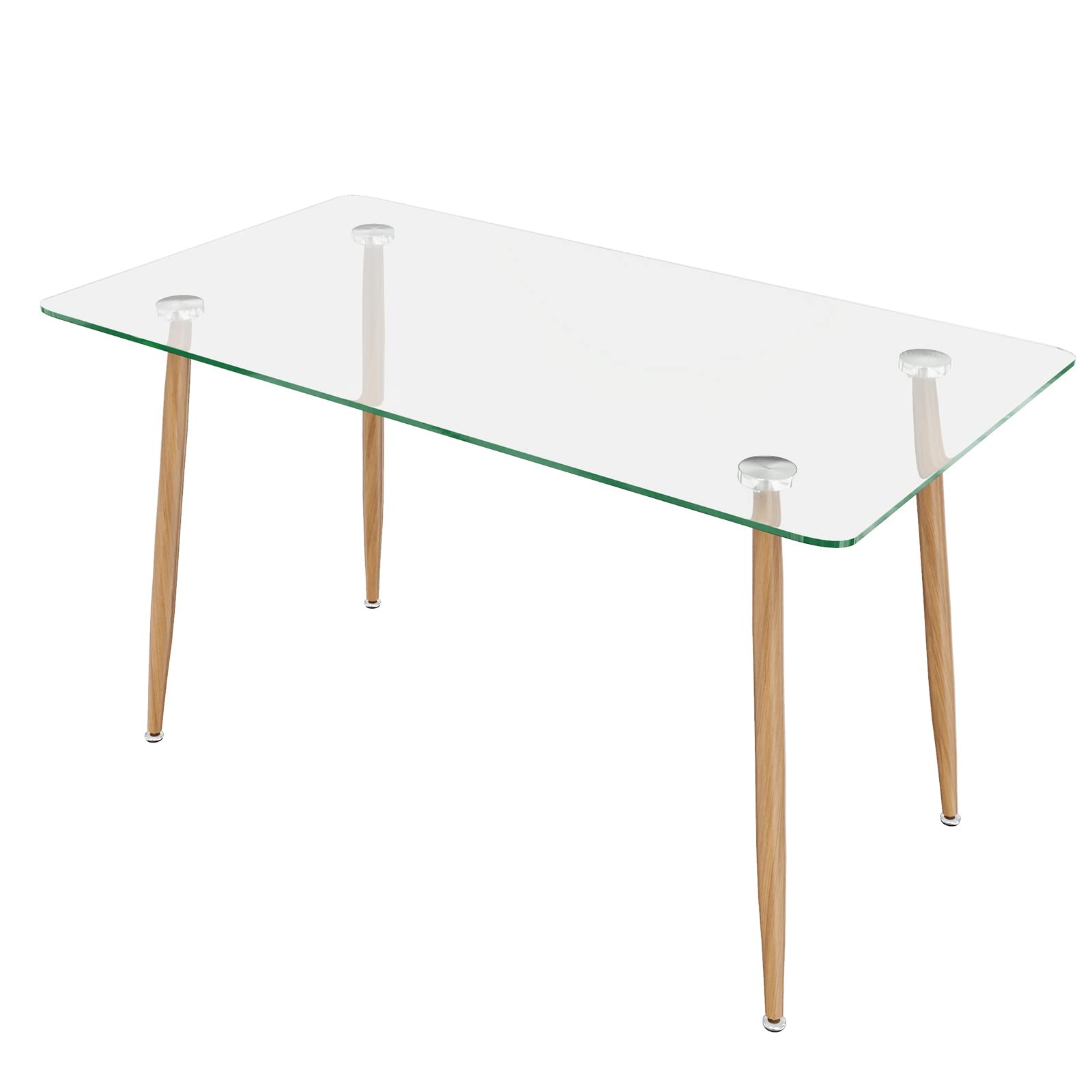 - Comes with heavy-duty steel legs, this glass dining table has excellent sturdiness and lasting durability. Plus, the external wooden grain imitation surface adds natural and retro feelings. Since the bottom adjustable foot pads, this rectangle kitchen table will keep stable on uneven floor.