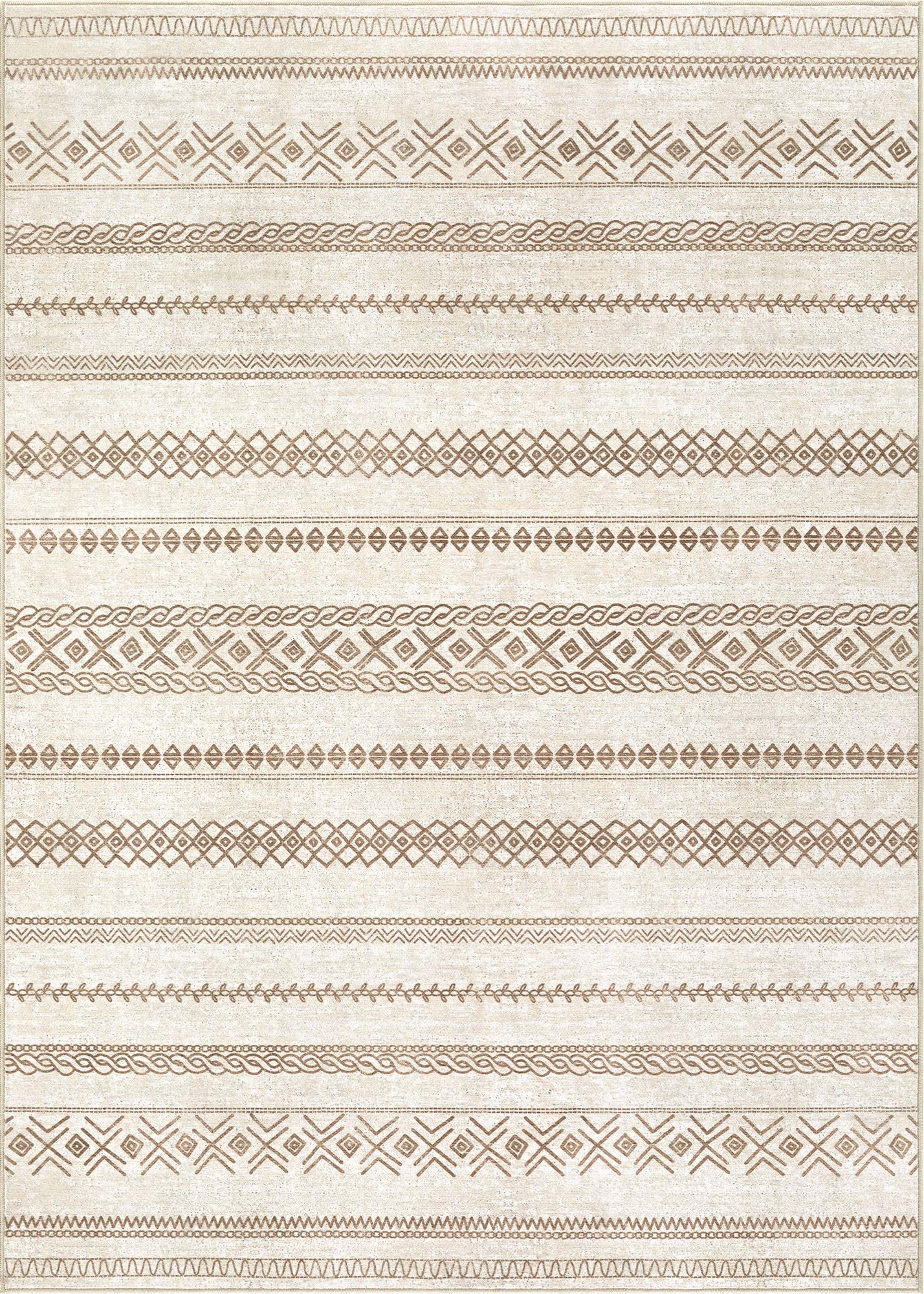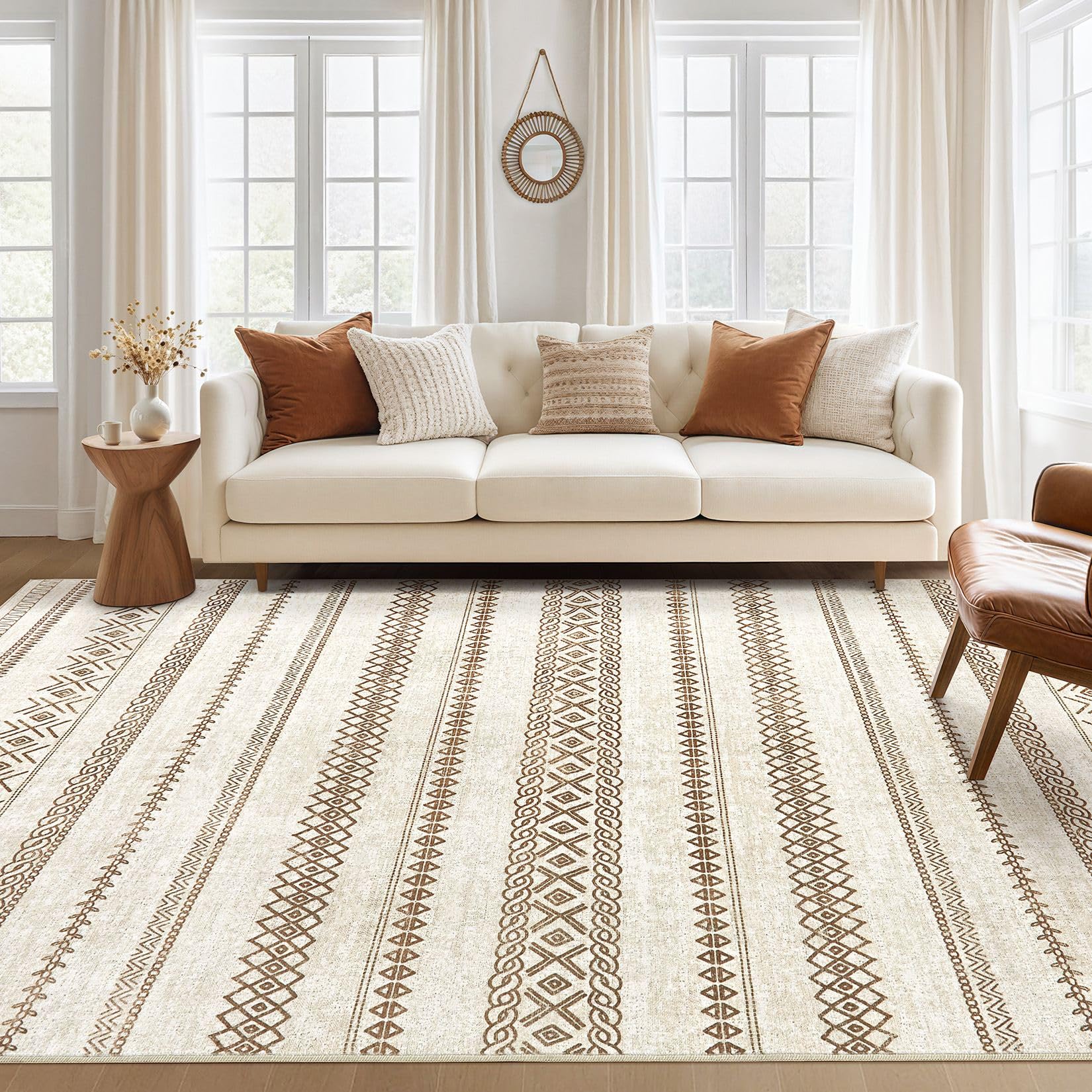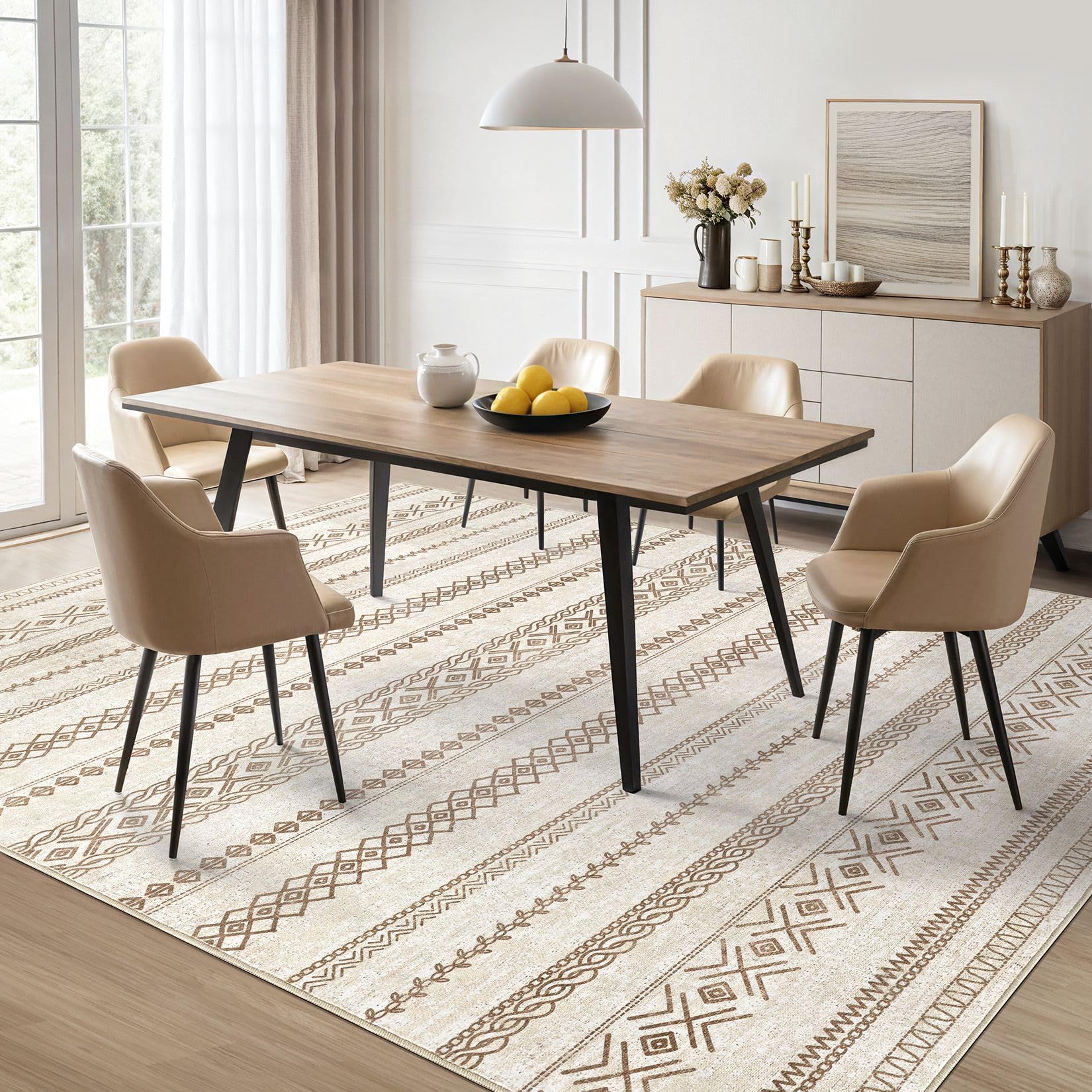 Area Rug 9x12 Washable Rug, Large Boho Moroccan Geometric Neutral Soft Rug for Living