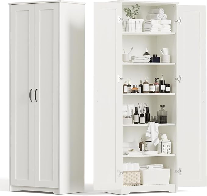 70" Tall Storage Pantry Cabinet, Bathroom Floor Organizer Storage Cabinet