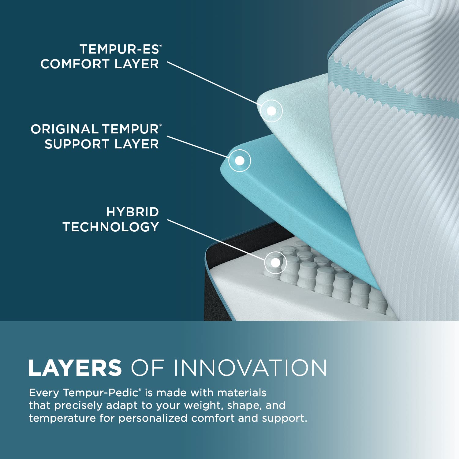 - 11-INCH HYBRID MEMORY FOAM MATTRESS—Our original legendary TEMPUR material is now combined with premium spring coils for the ultimate relaxation.SPRING COILS & MEMORY FOAM HYBRID—All the reinforcement of a traditional innerspring mattress with the conforming comfort of multiple foam layers