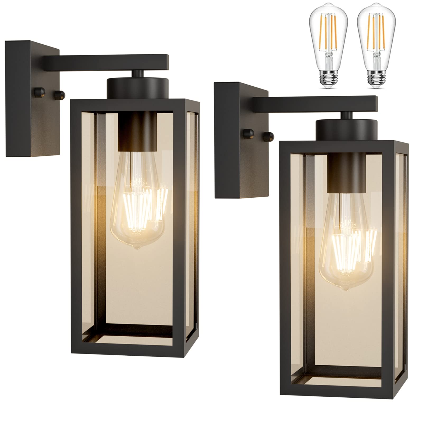 Outdoor Wall Lantern 2 Pack Black Exterior Wall Sconce with Clear Glass Shade