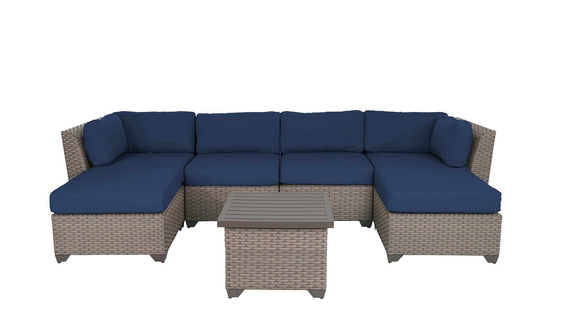 Florence 7 Piece Outdoor Wicker Patio Furniture Set, Navy