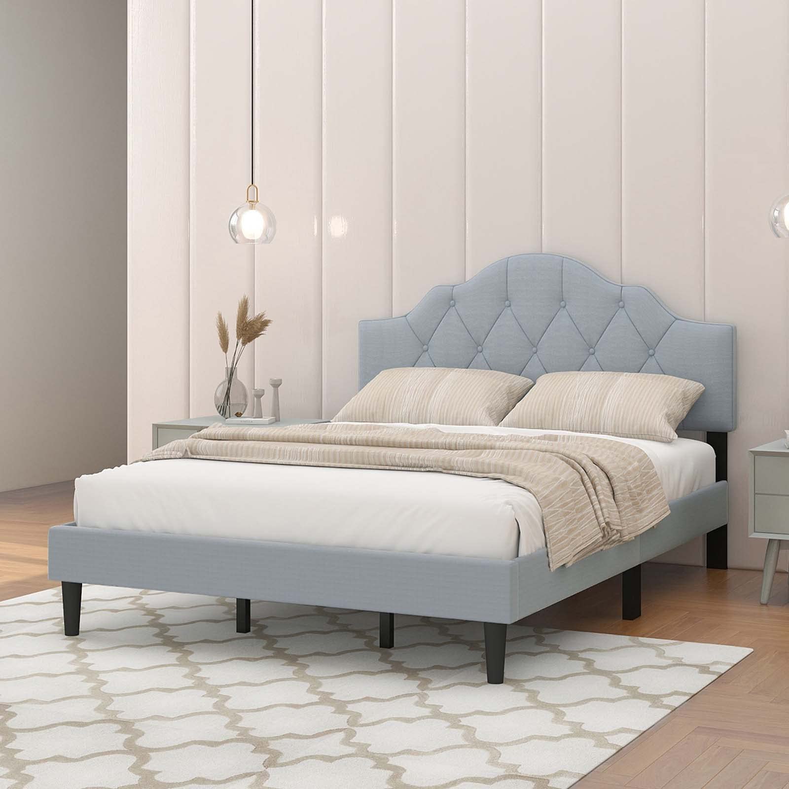 Full Size Upholstered Platform Bed Frame with Linen Button Headboard
