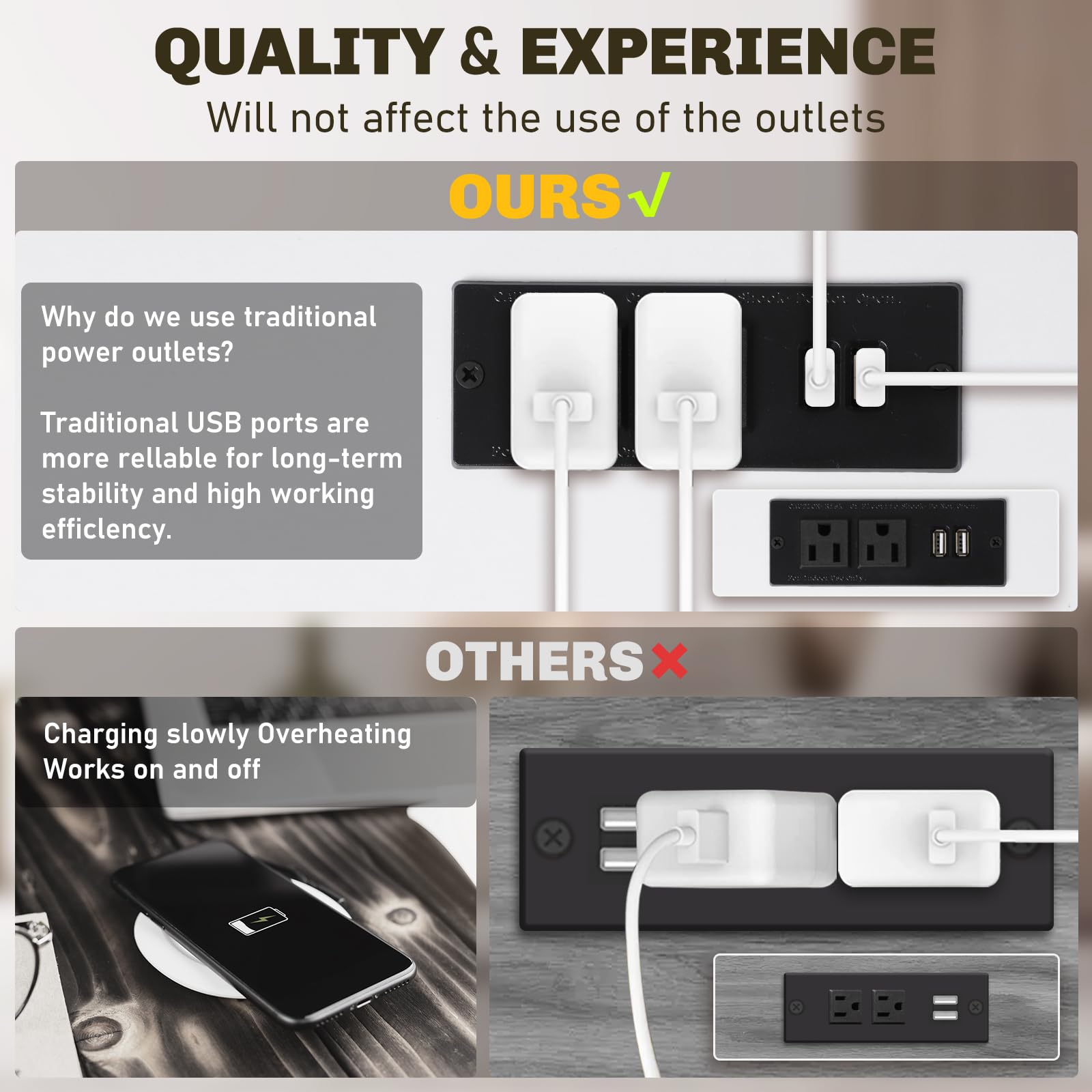 - This charging station conveniently powers up to four devices simultaneously with its 2 x USB Ports and 2 x 3-Prong Outlets. Ideal for charging phones, lamps, and other electronics, it's the perfect setup for convenient charging.