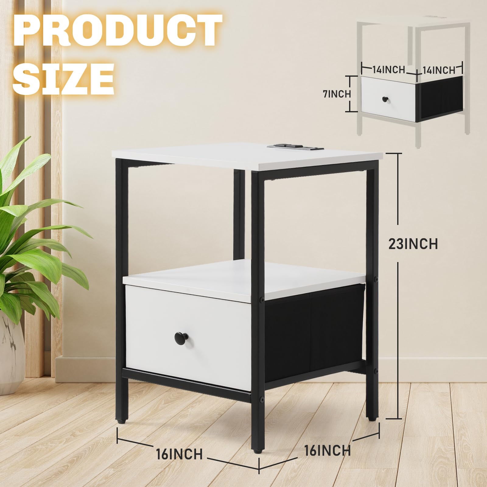 Nightstands Set of 2, 16" x 16" x 23" Bed Side Table with Charging Station