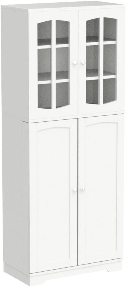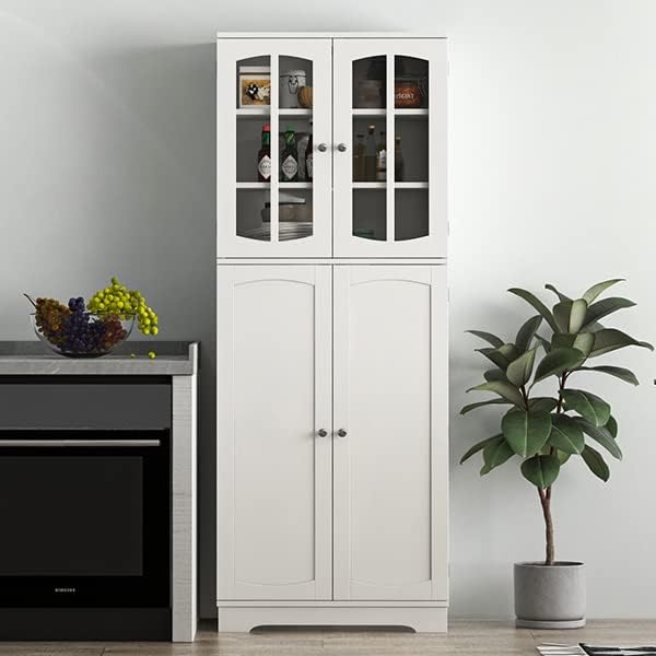 - Modern & Stylish Appearance - The white color scheme and its simple arc design give this food pantry cabinet an elegant and modern look! Whether you put it in the kitchen, dining room, living room or study, whether your decor style is modern or rustic, this kitchen cupboard can reflect your extraordinary taste.