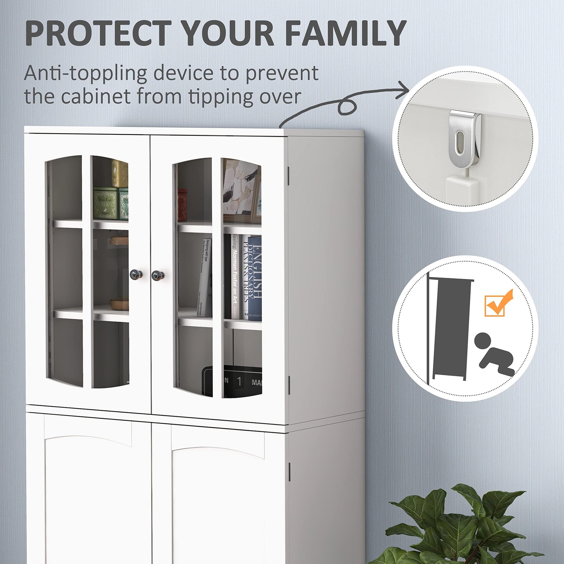 - Durable & Safe Material - The wood frame of this storage cabinet is made of P2 level MDF. The high-quality white paint treatment makes the surface of the frame smooth and waterproof, and each shelf is sandblasted to prevent slipping and has scratch resistance. In addition, the top portion of the 2 door panels is embedded with transparent tempered glass, which is sturdy and not easy to break, ensuring safe use.