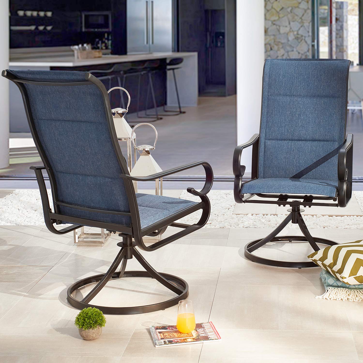 - 360 DEGREE SWIVEL CHAIRS: Swivel function provides extra comfort and relaxation. These patio dining chairs perform a smooth 360-degree spin and slight rocking motion while you enjoy your meal. Set the mood with comfortable and relax seating for your patio. Patio Chairs Dimension - 23.2"W x 29.5"D x 42"H.