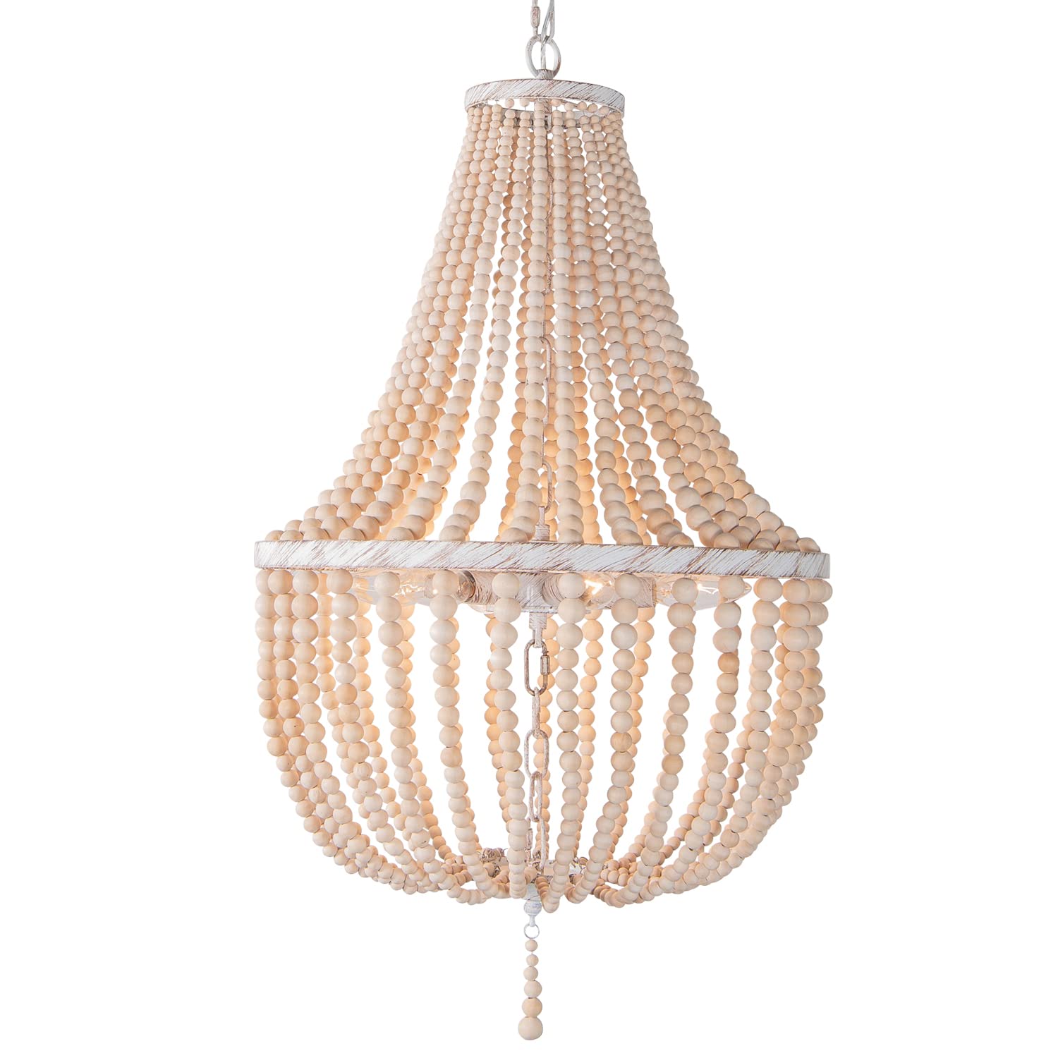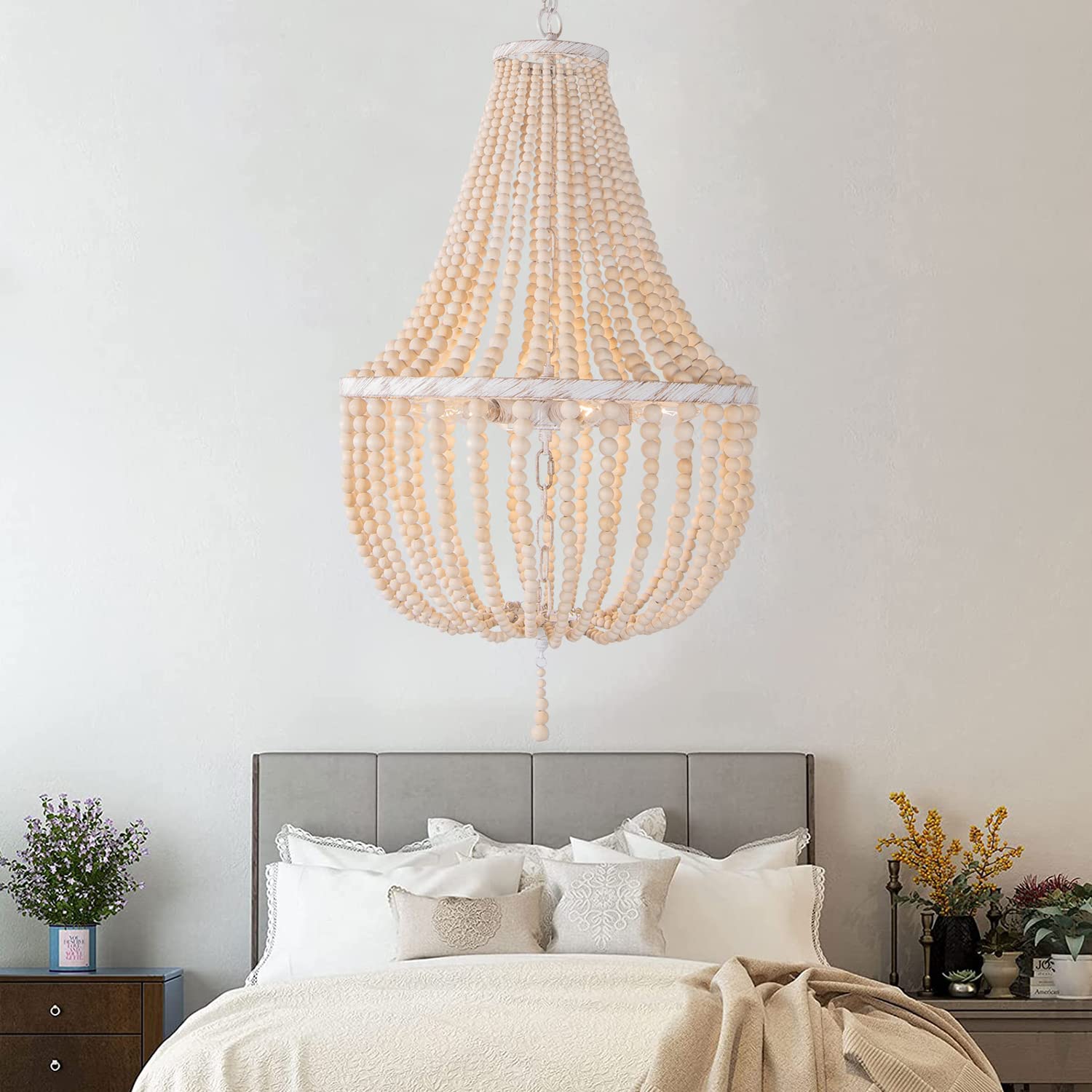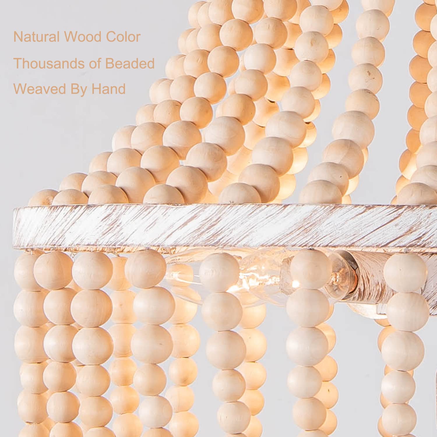 18-inch Boho Wood Beaded Chandelier Modern Farmhouse Ceiling Pendant Hanging