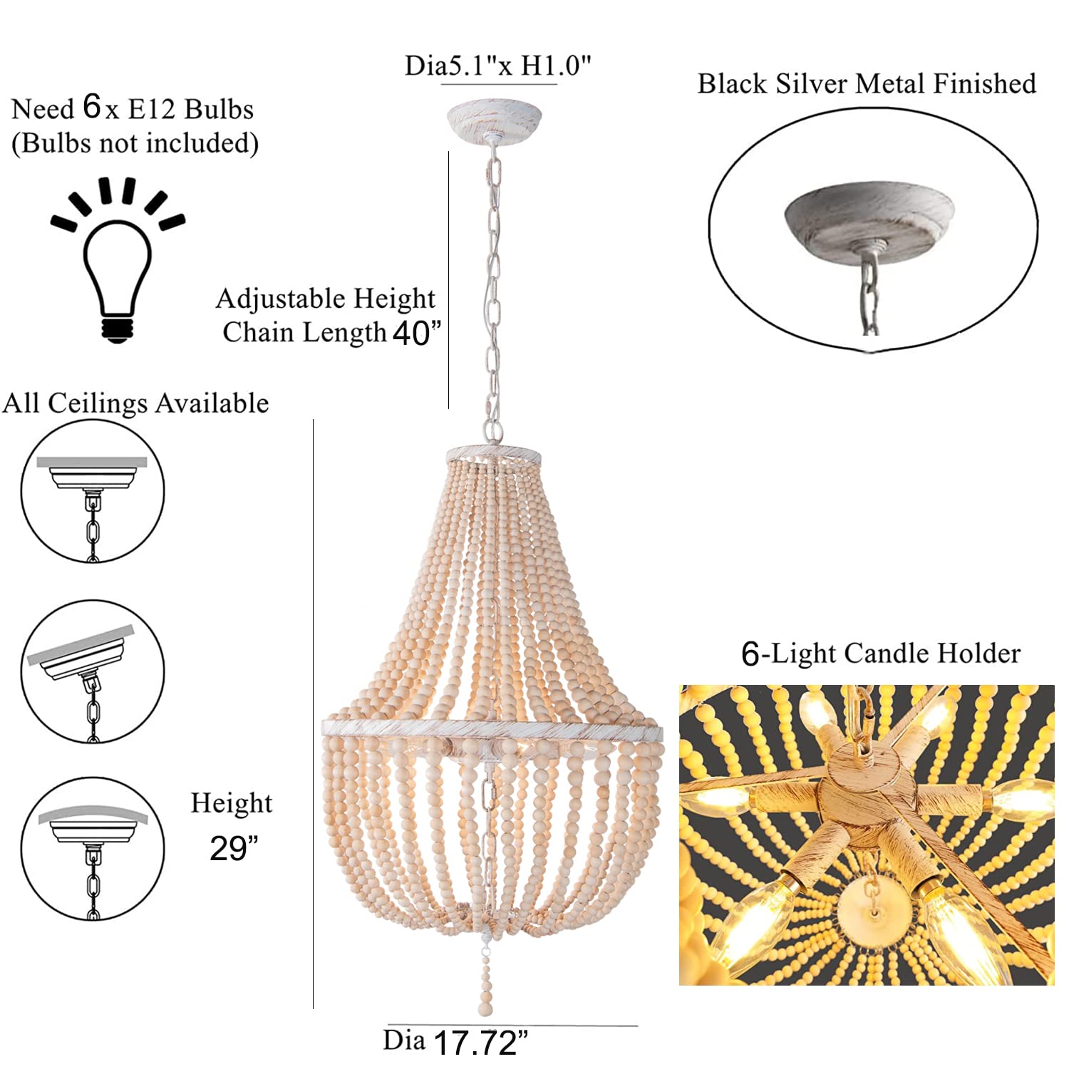 - Please pay attention to product size and wood bead color. There are two product sizes here: mini 3 lights and large 6 lights, please choose the right size according to the room