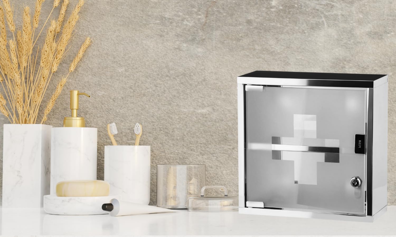 - EASY ACCESS WITH A SECURE LOCK - The secure locking system provides easy access while ensuring safety. Whether for medications, first aid, or valuables, the cabinet keeps everything secure and organized in one convenient, accessible location.