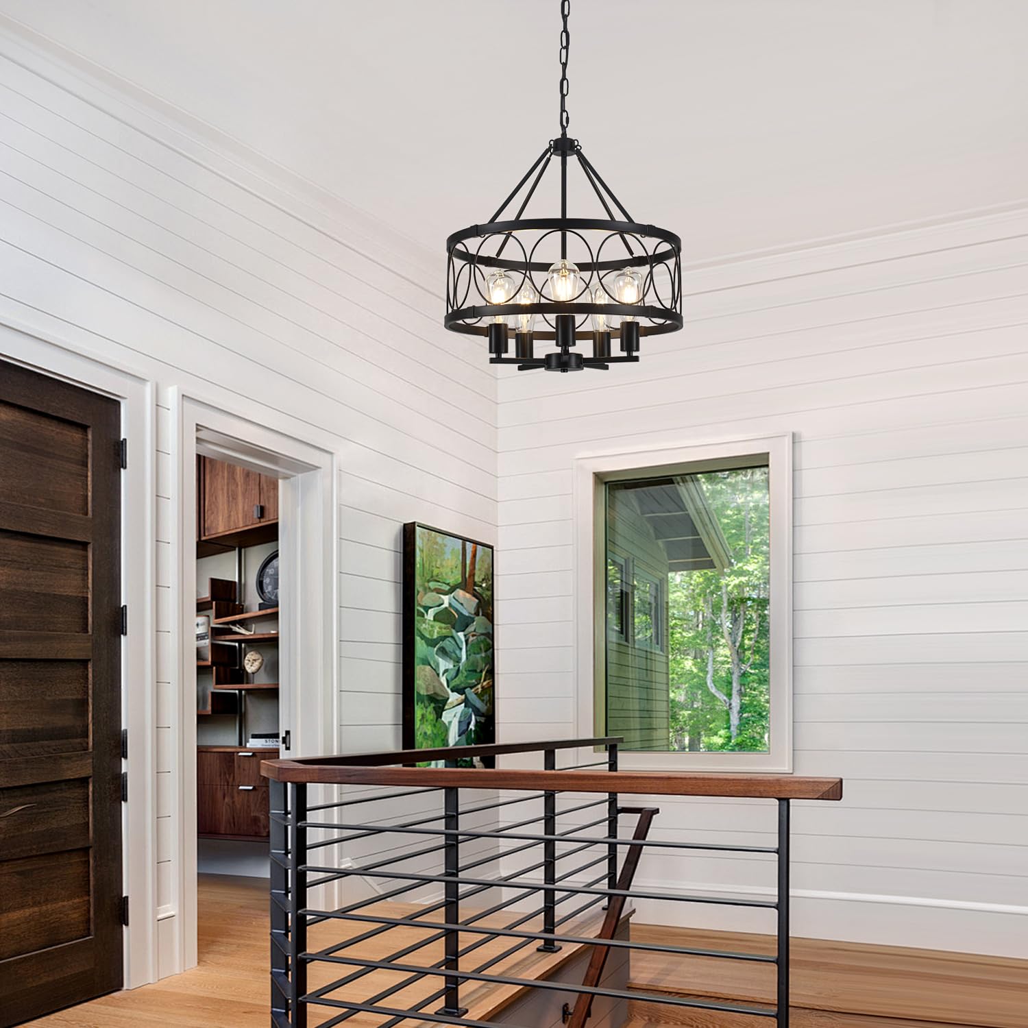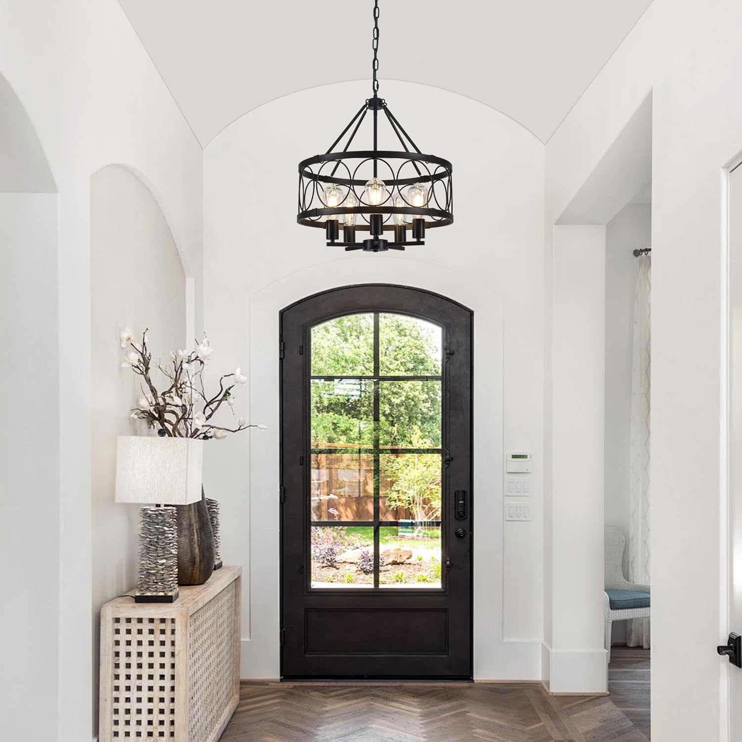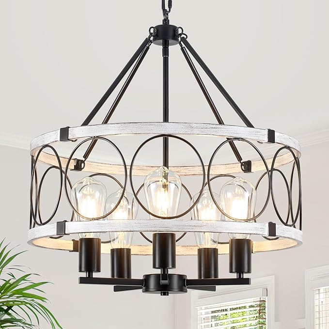 - This metal large round chandelier combining charming vintage style with modern industrial appeal. Fits for varieties of room style like farmhouse, vintage and modern, perfectly suitable for kitchen, dining room, living room, hallway, entryway, bedroom, ect.