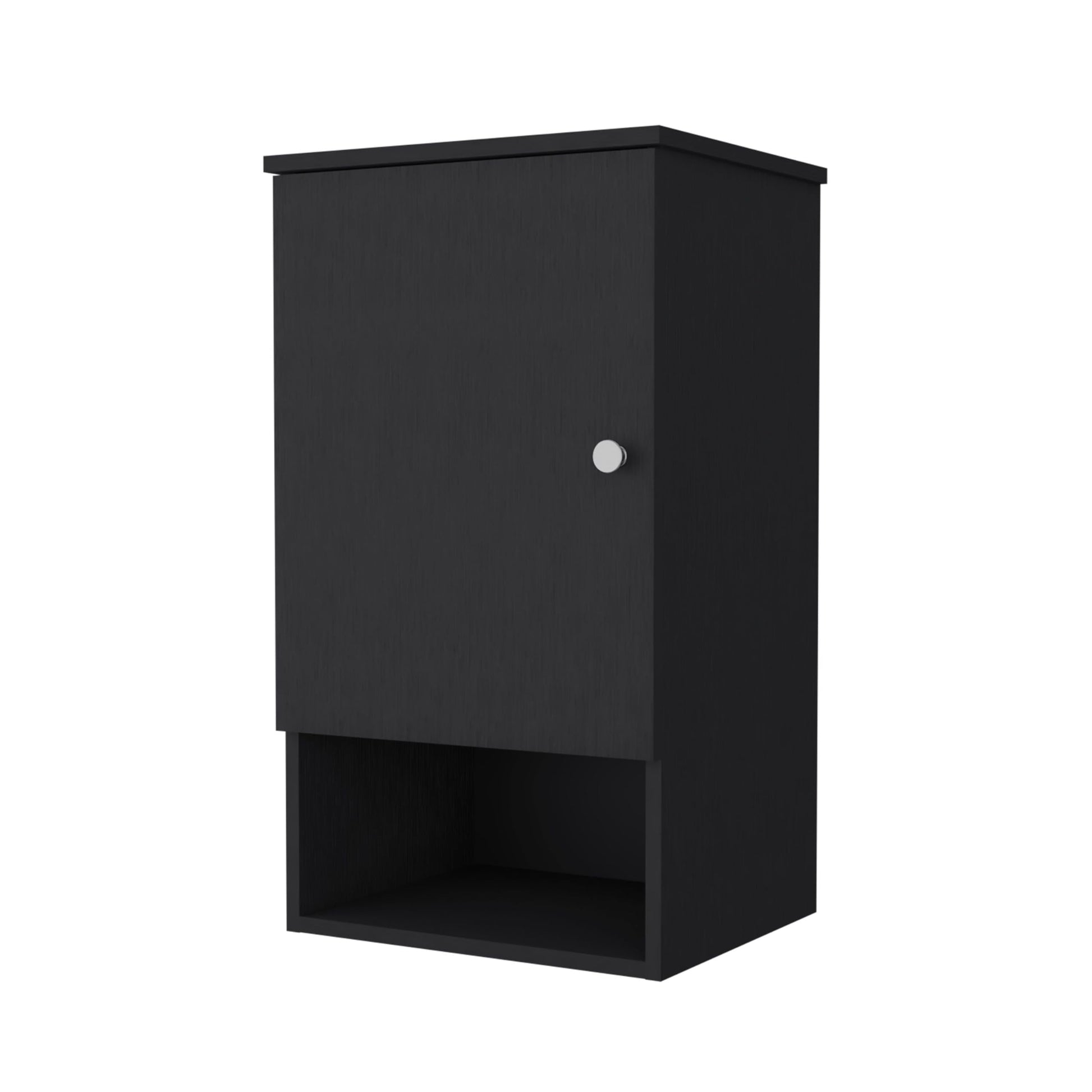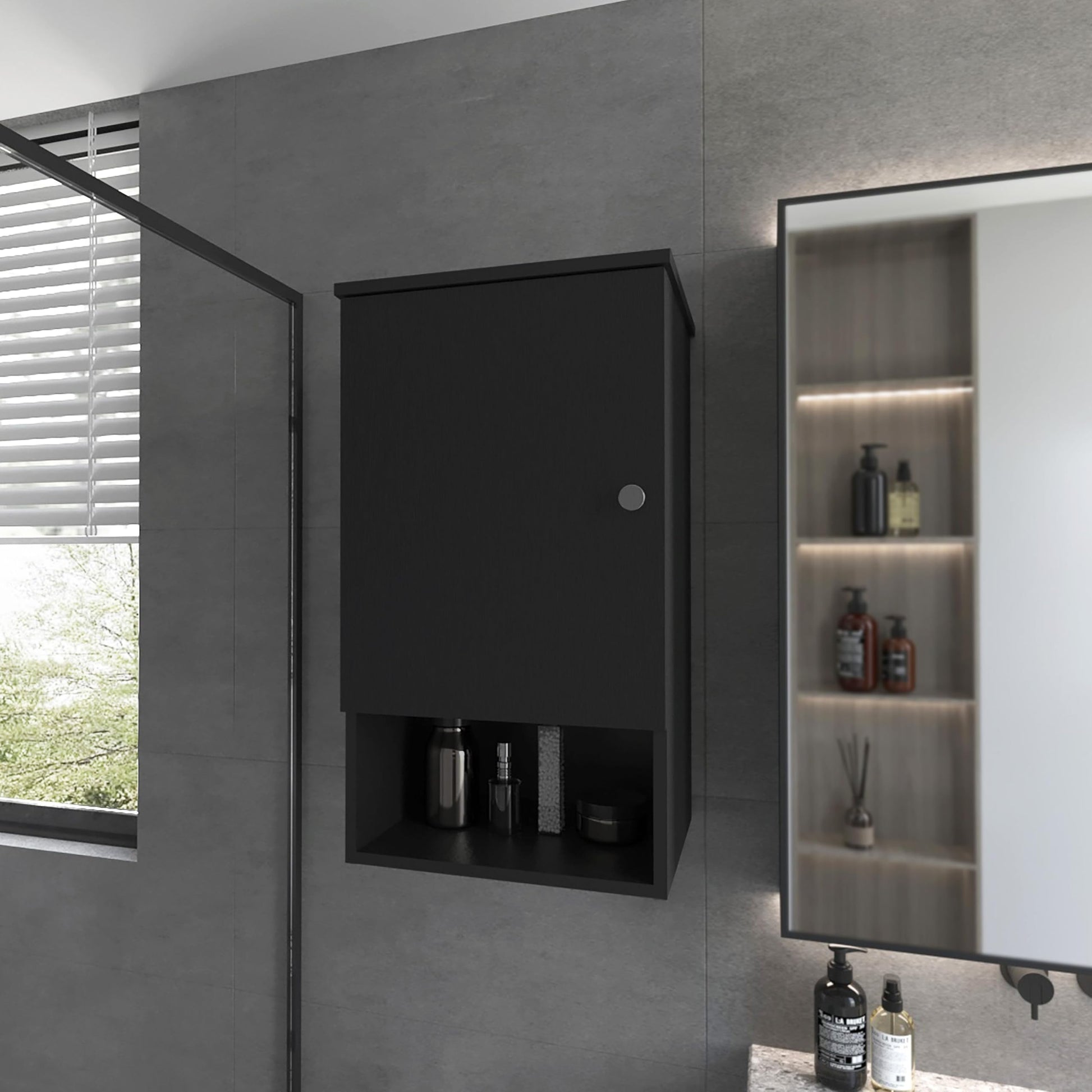 Recessed Medicine Cabinet with One Door, Two Internal Shelves, Black Melamine Finish