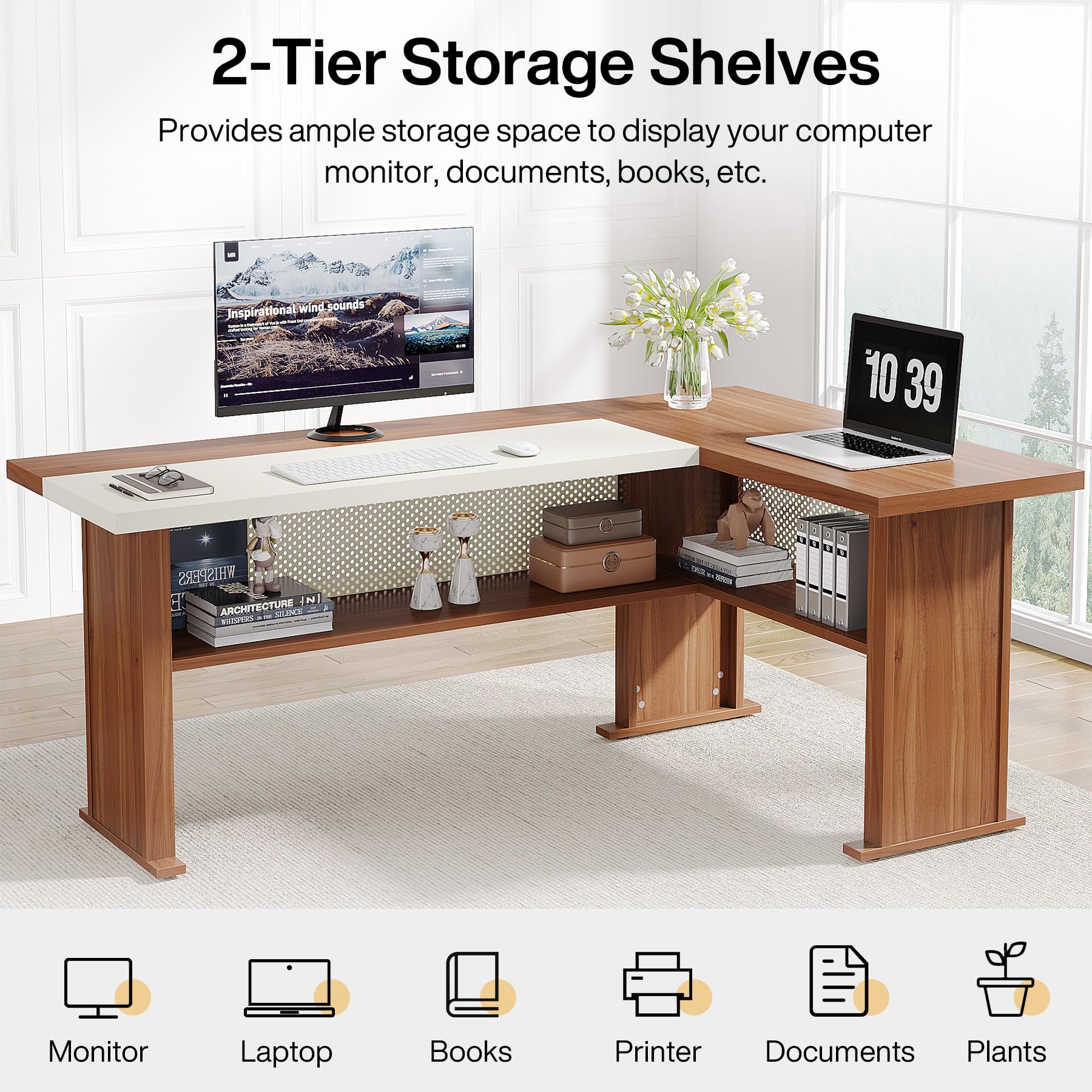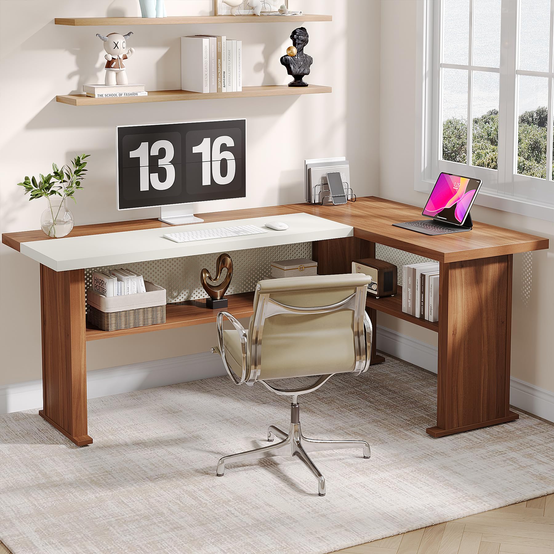 63" L-Shaped Executive Desk, Large Office Desk with Bottom Shelves
