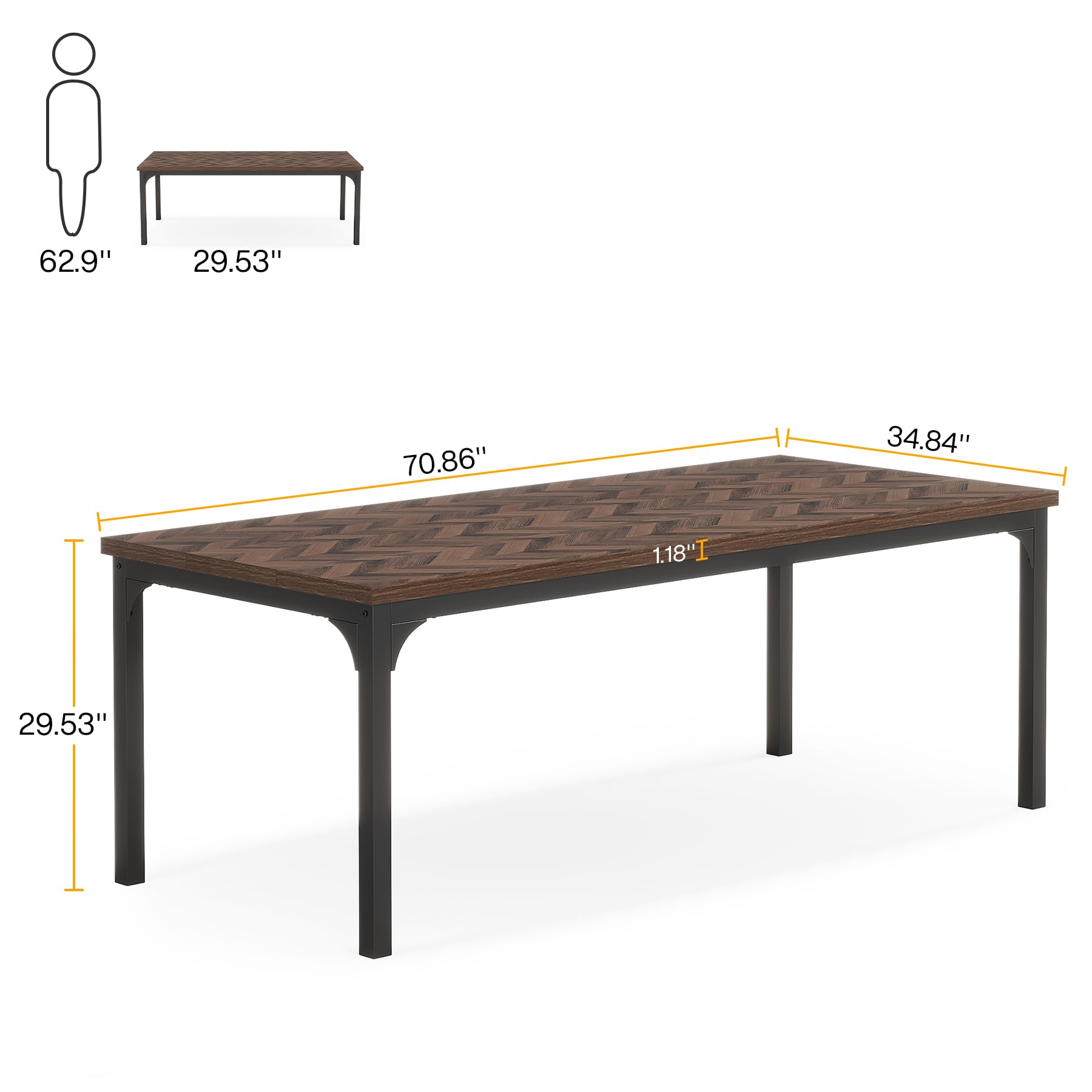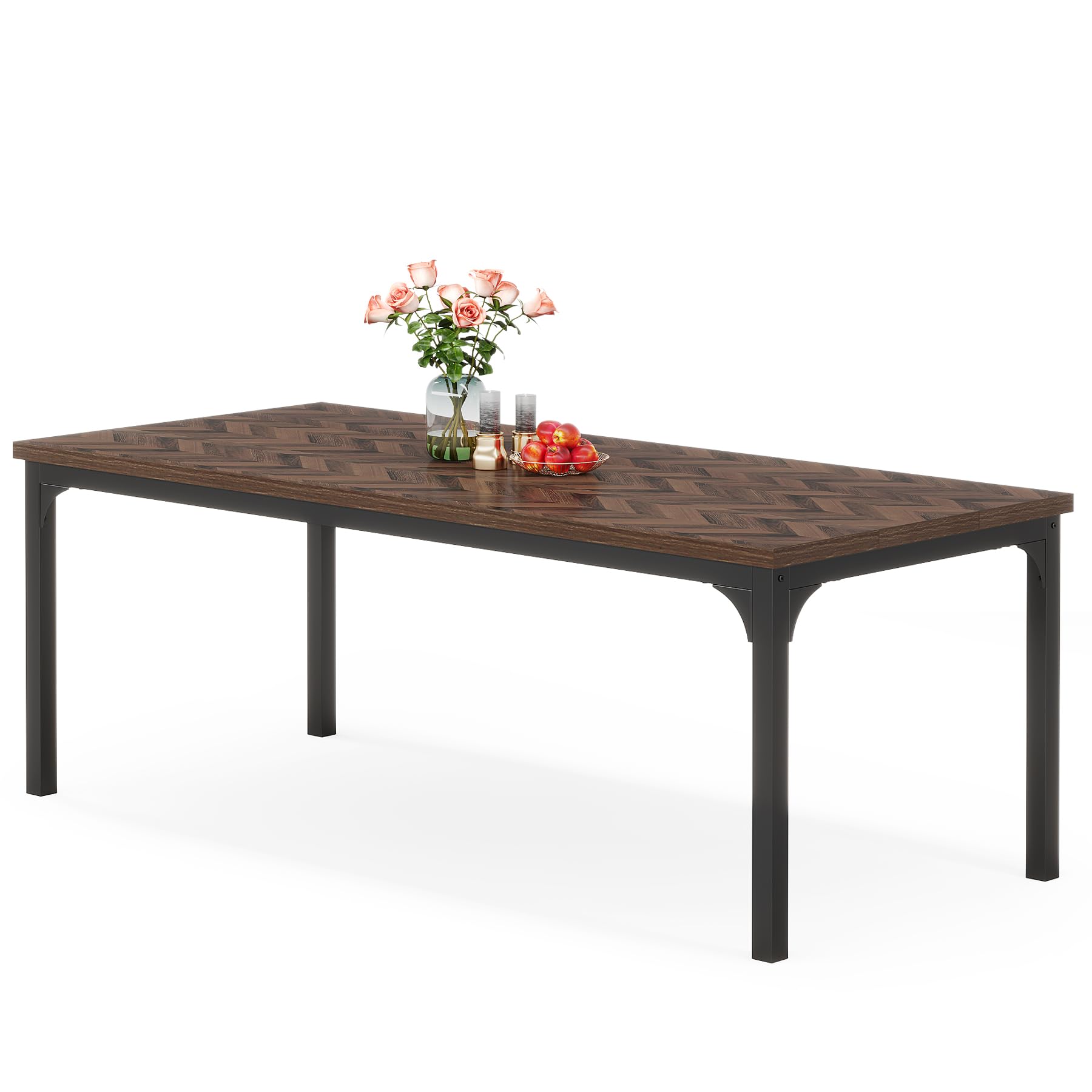 Farmhouse Dining Table for 6-8, 70.9 Inch Rectangular Wood Kitchen Table with Heavy Duty Metal Legs