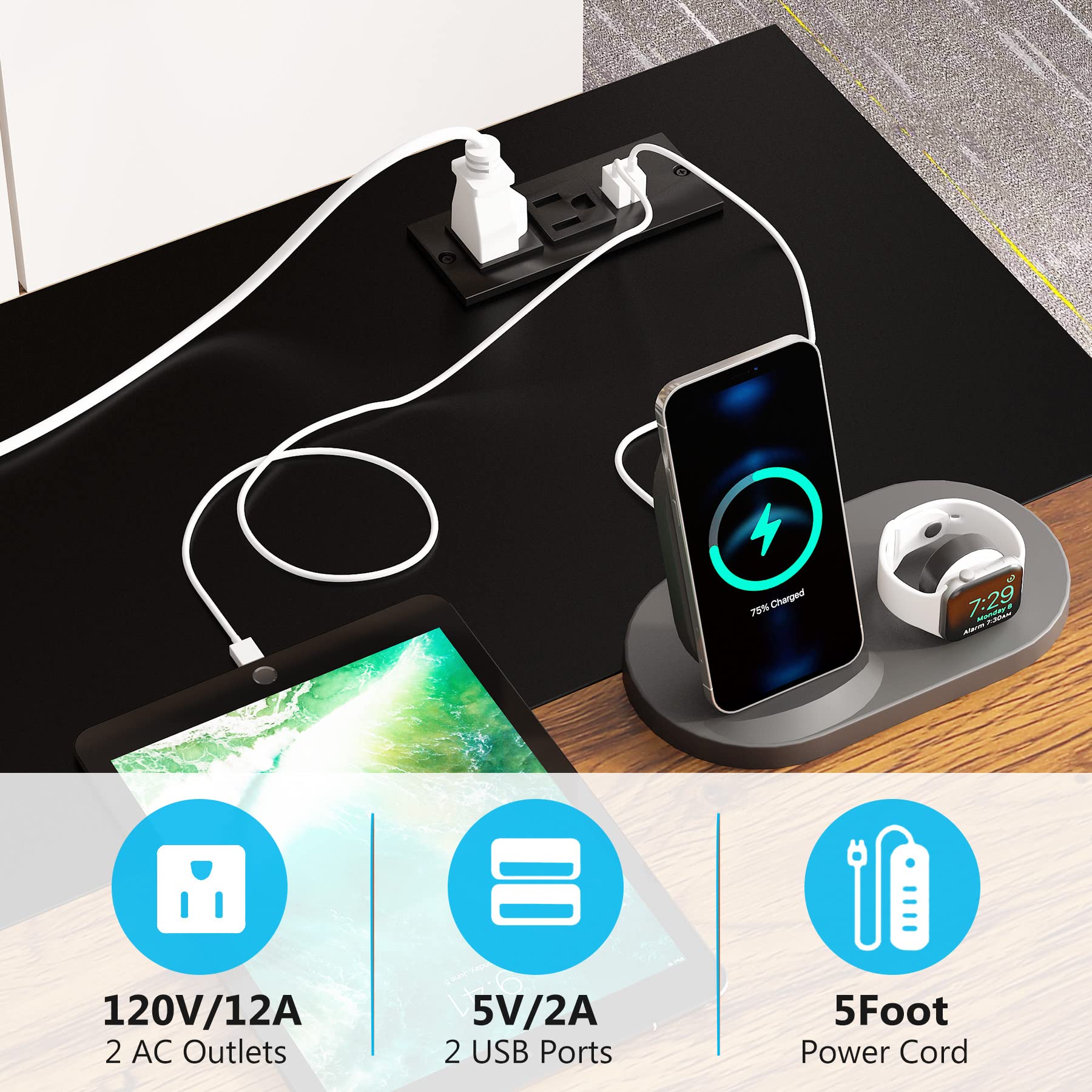 - USB CHARGING & POWER OUTLET: The office desk is built in 2 USB charging ports and 2 AC outlets for your phone, Bluetooth, headset, tablet, power bank, gaming gear with fast charging, which provides great convenience to your life when you are working or playing games.