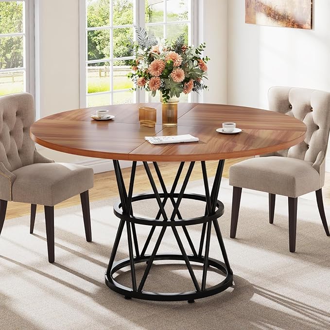 - Multi-Functional Round Table: The unique look is paired with a spacious tabletop and compact support base, making this circle dining table versatile enough in multiple occasions. This brown dining table is suitable for home kitchens and dining areas. It's large to be used as a wooden kitchen table for 6, a coffee table, or a leisure tea table
