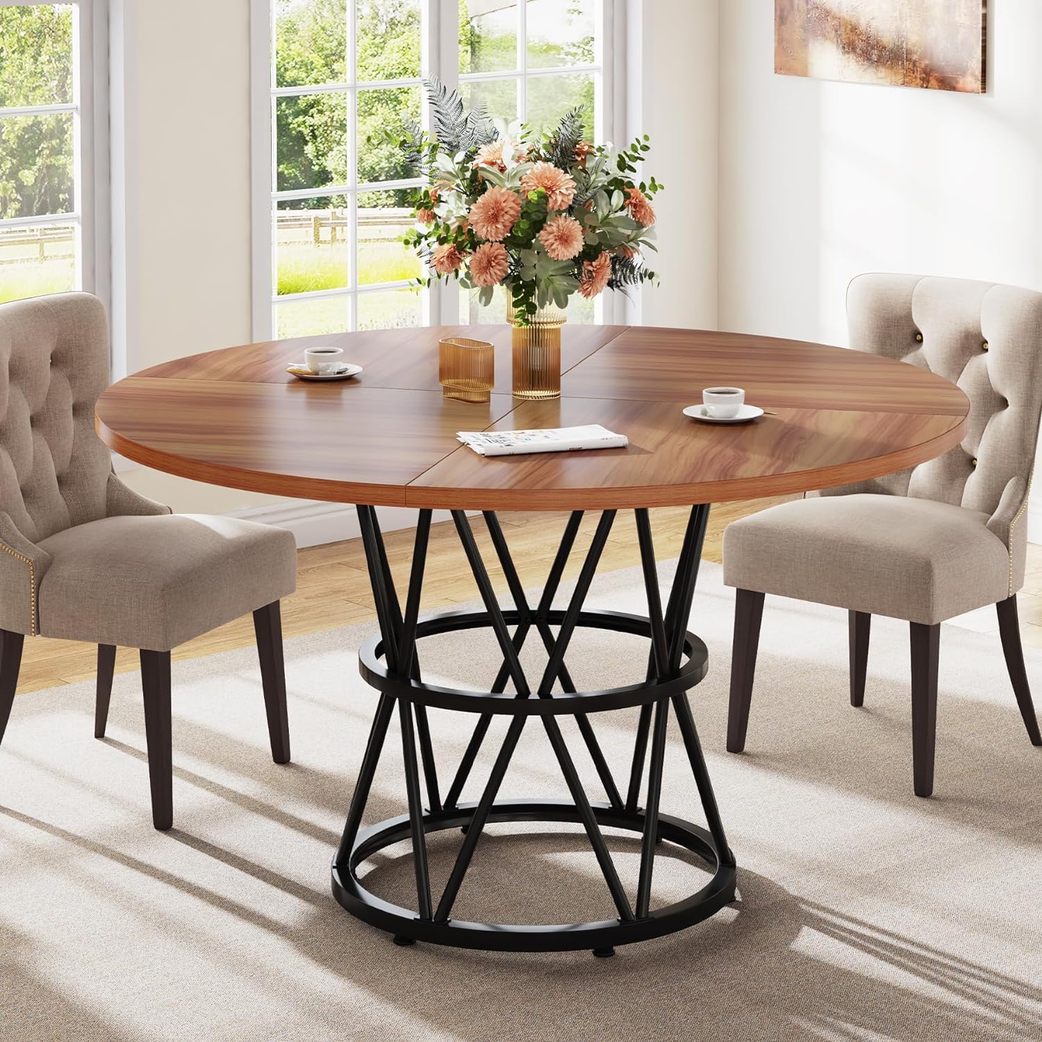 - Timeless Industrial Charm: Still looking for a suitable round kitchen table for your home? Look at the Tribesigns dining table. With its rustic wood grain finish and a unique base design, our round dining table for 4 will be a focal point in your kitchen or dining room