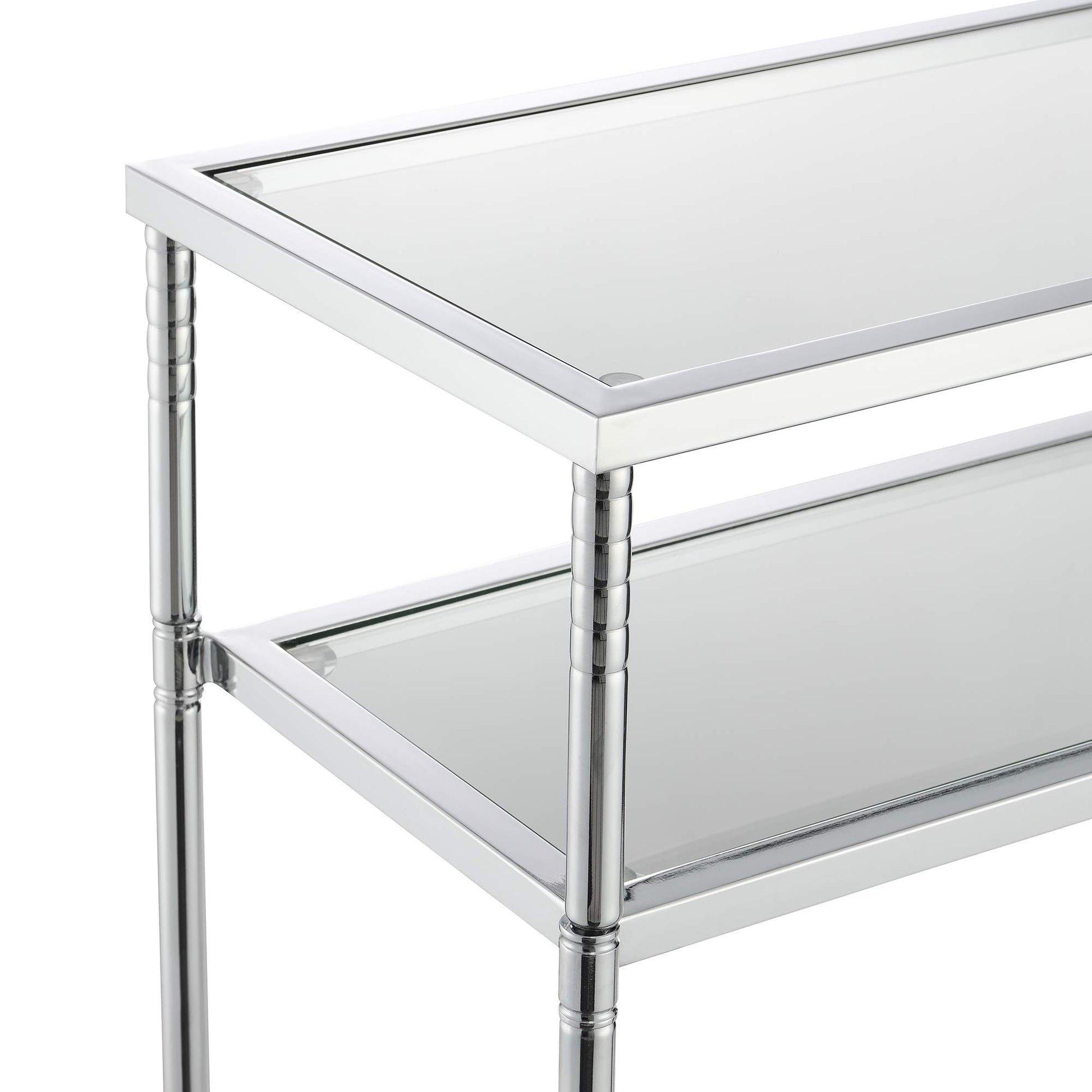 This versatile console table complements a variety of interior design styles, from minimalist modern to transitional décor. The timeless glass and chrome combination ensures lasting appeal and easy coordination with existing furniture.