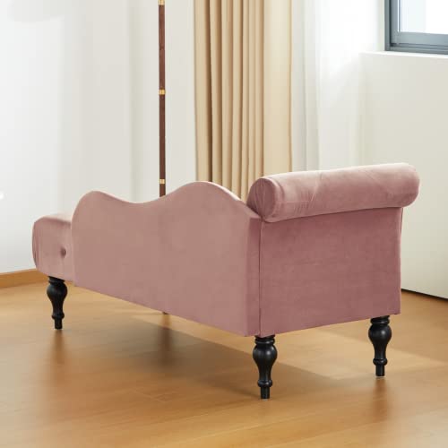 Tufted Upholstered Velvet Rolled Arm Chaise Lounges Indoor Chair