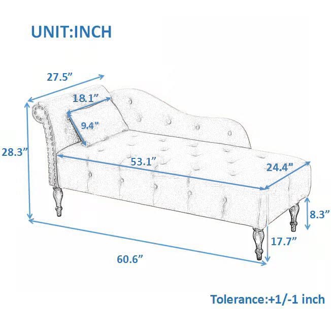 - With classical Style Tufted buttons on the backrest and arm, and a comfortable foam-filled cushion, our soft chaise lounge just requires minor assembly. For your home or office, there are a wealth of colors for you to choose from to meet your various matching needs